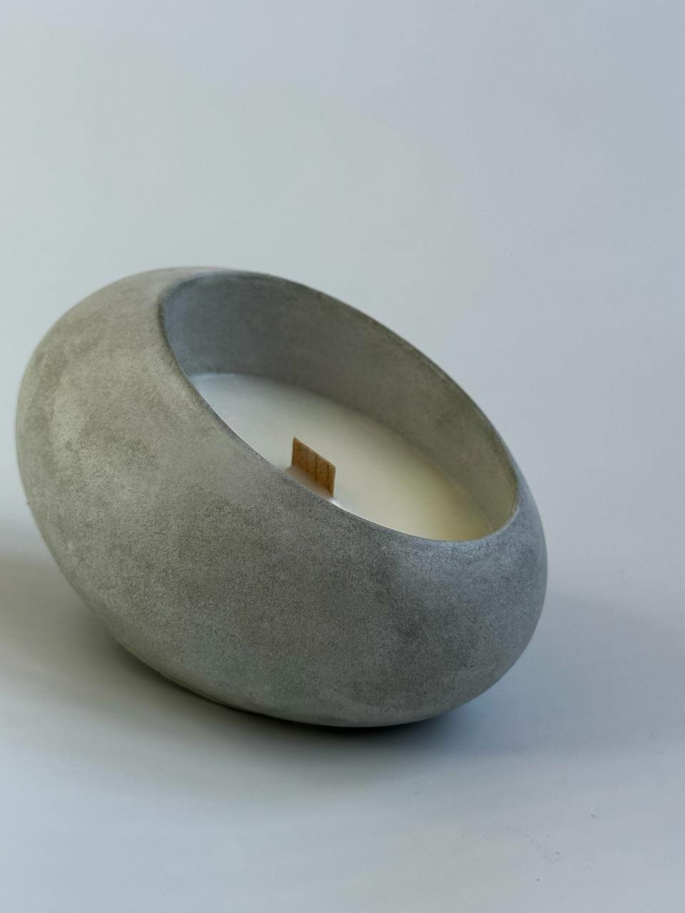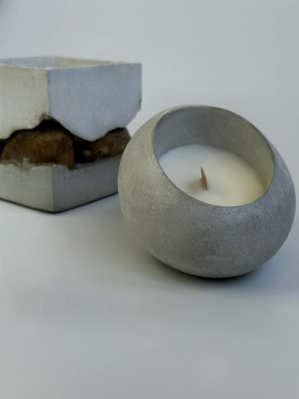 Купить Ароматическая свеча, аромат "Сандаловое дерево", 21. LUMIERE, подсвечник из бетона, ручная работа, соевый воск