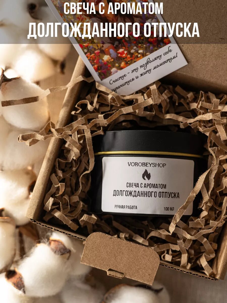 Свеча Vorobeyshop с ароматом "Долгожданного отпуска", кокосовый воск, ручная работа интересное: