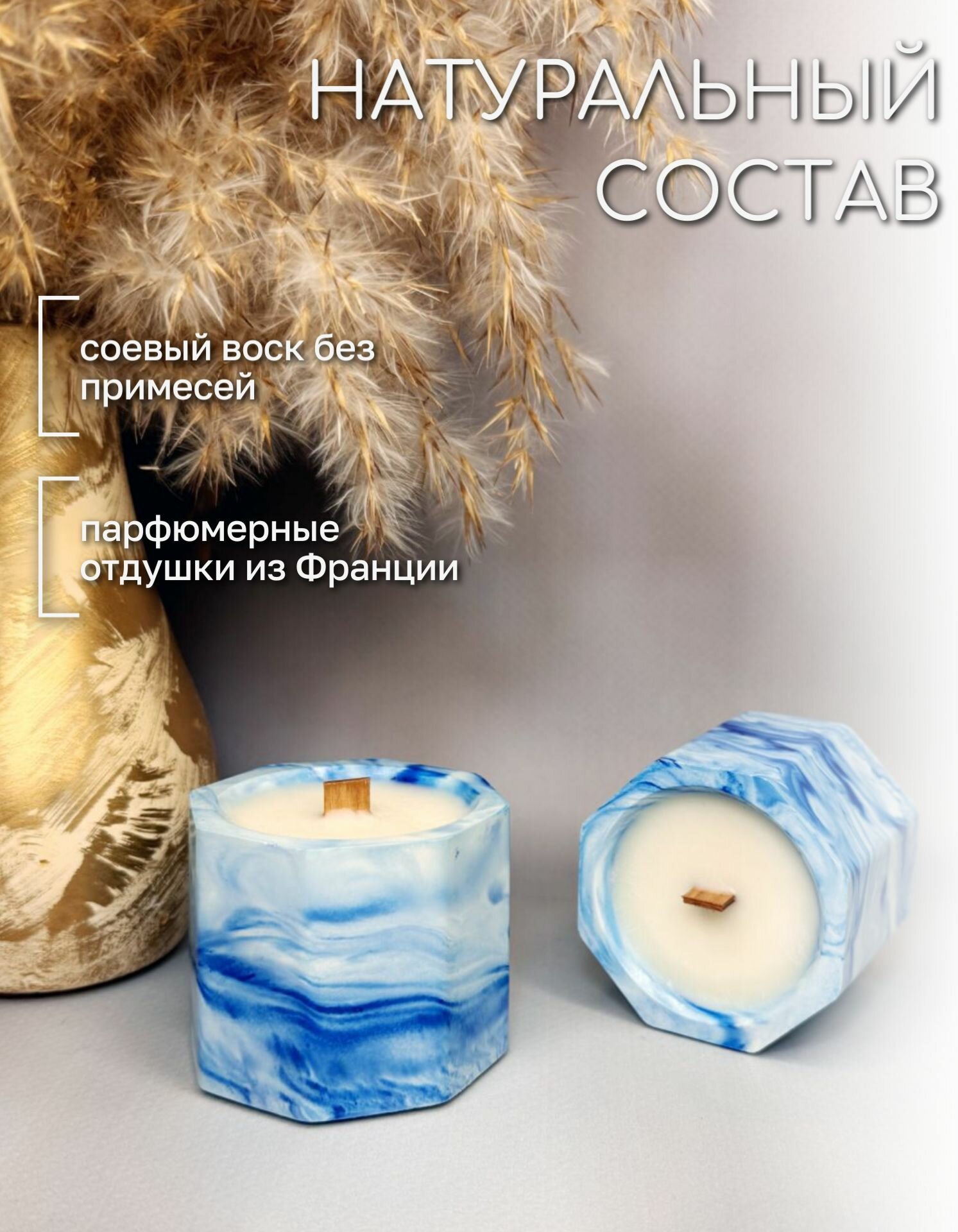 Аромасвеча ручной работы, "Лемонграсс и виноград", 45 мл.