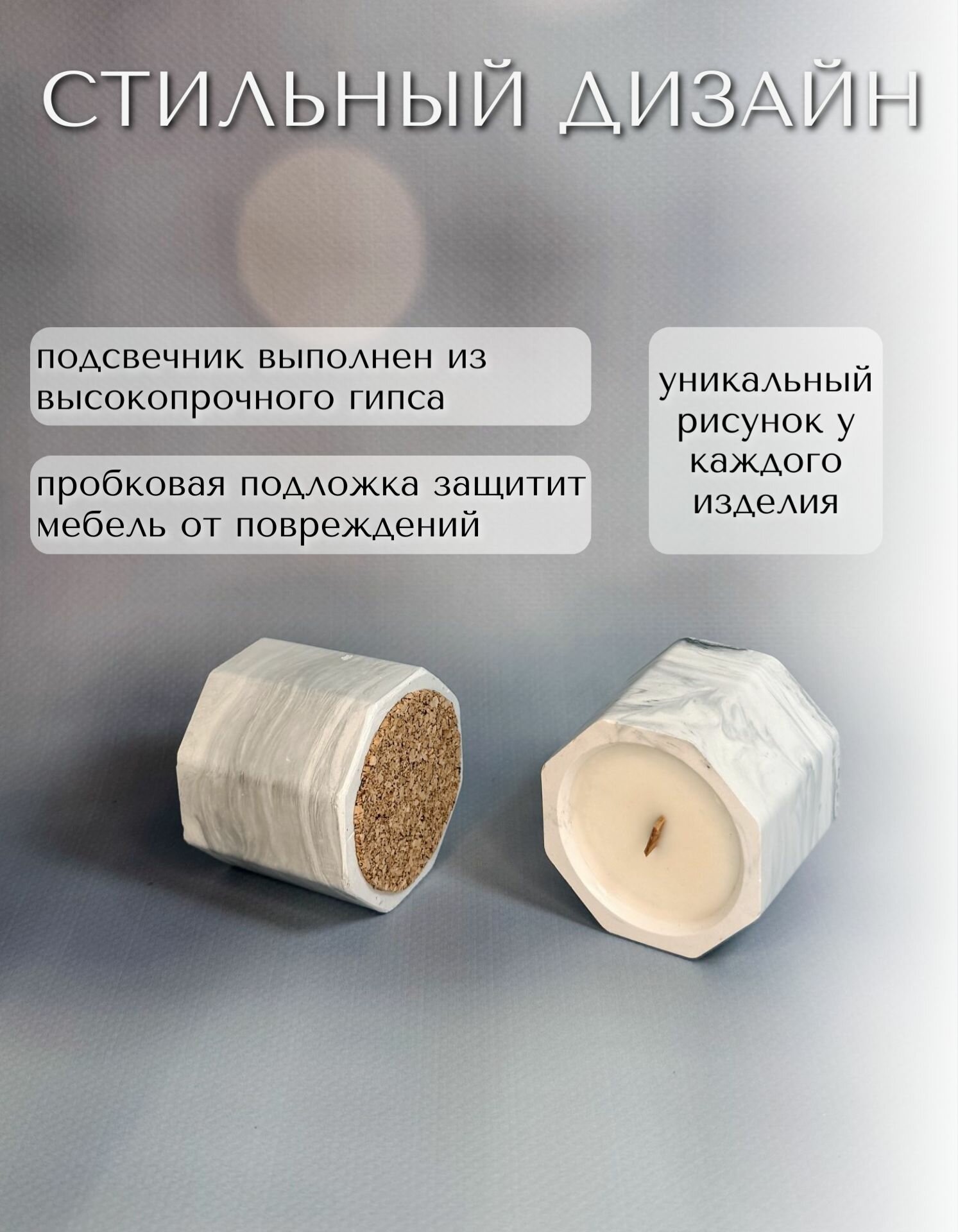 Аромасвеча ручной работы в гипсовом подсвечнике, "Грейфрут", 45 мл.