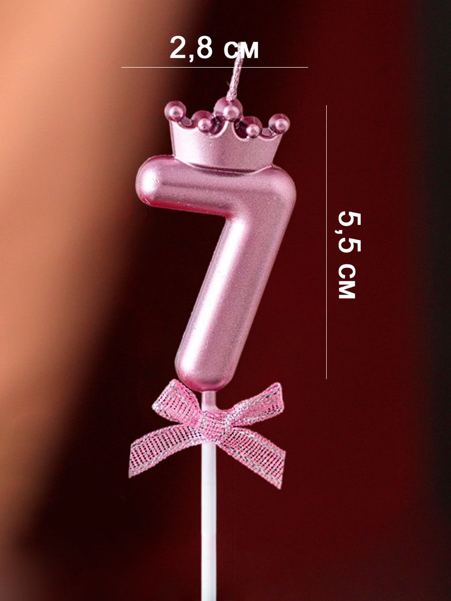 Свеча для торта стеариновая Riota Цифра 7, Розовое золото, 4,5 см, 1 шт.