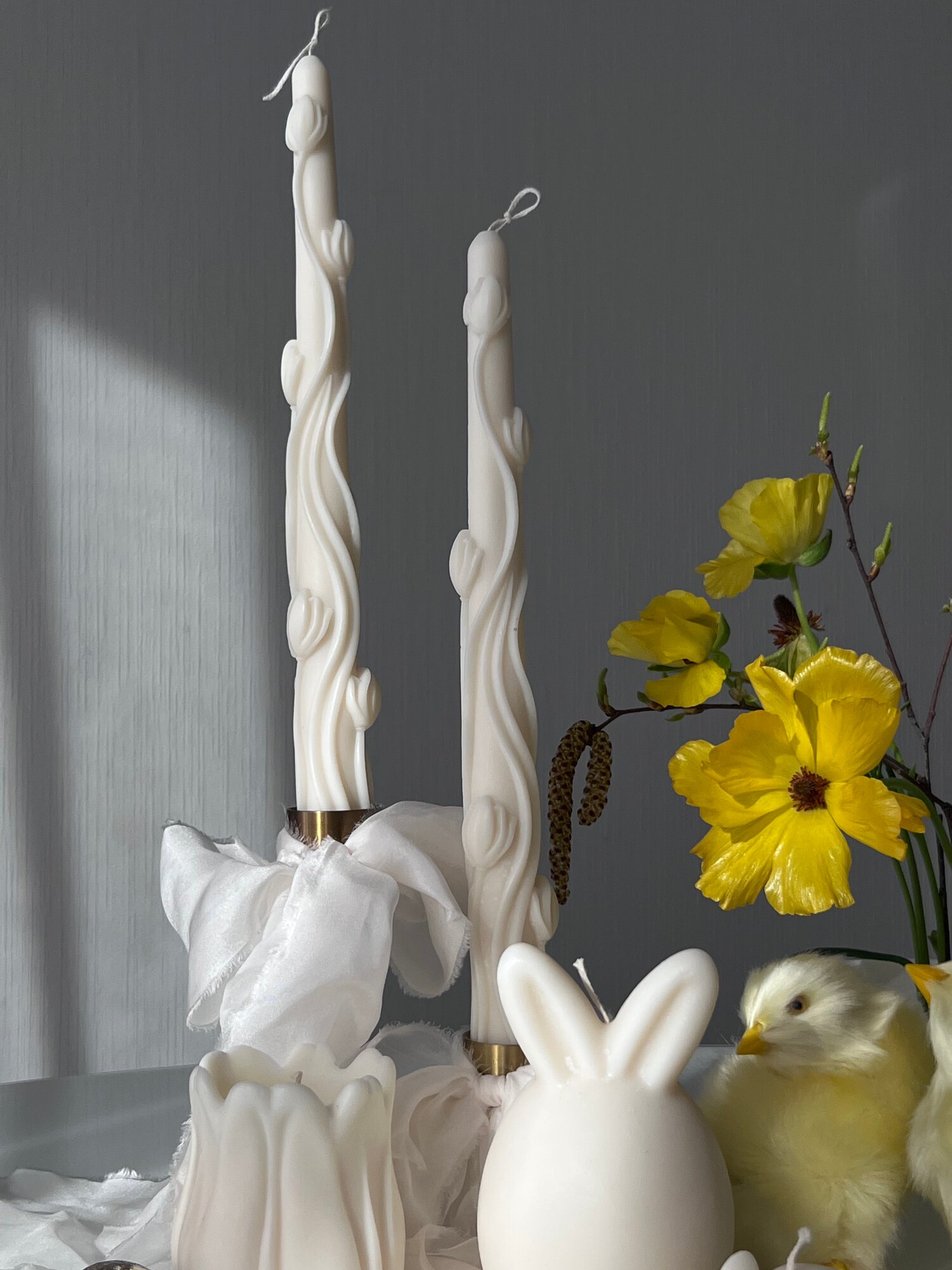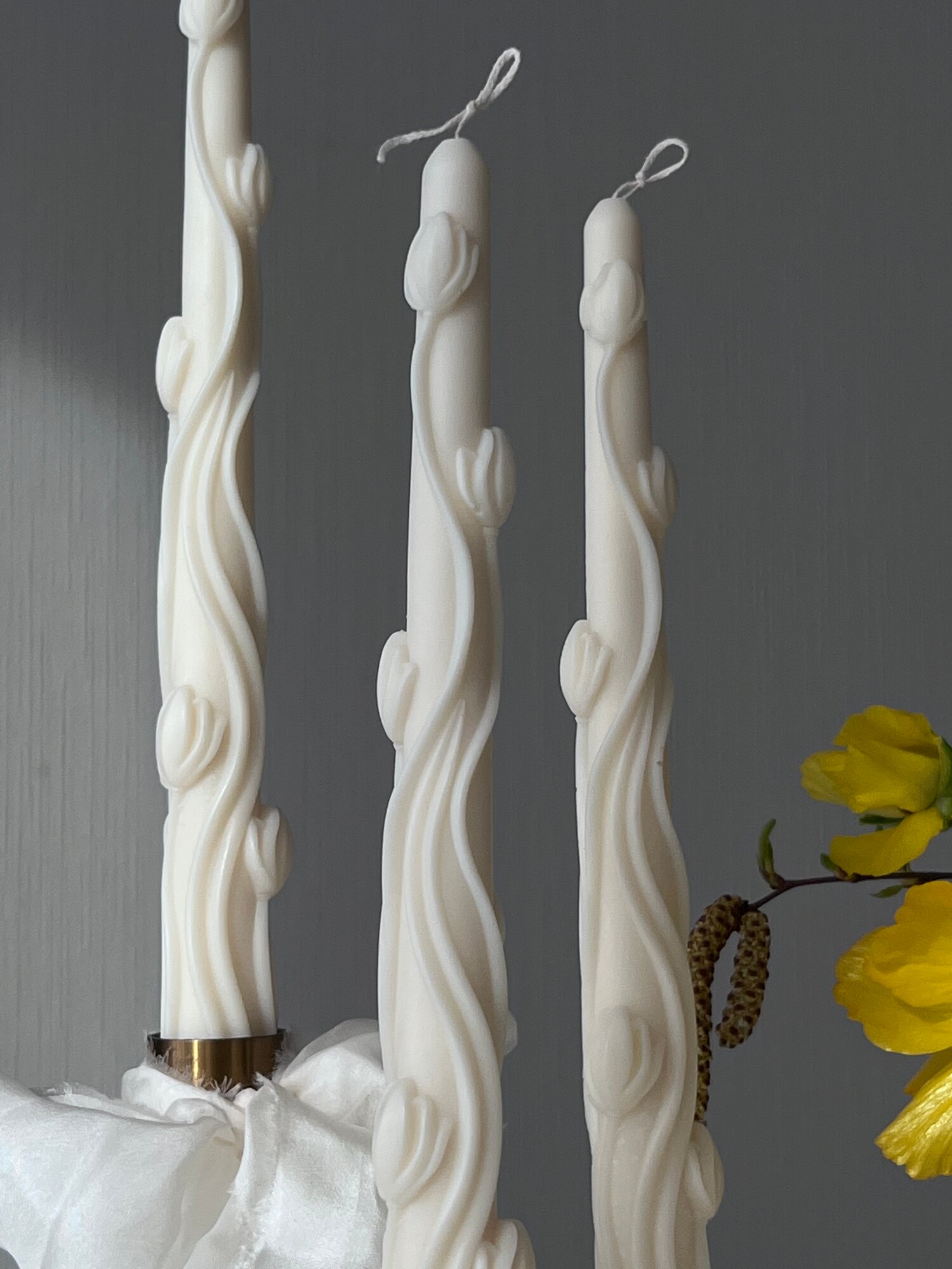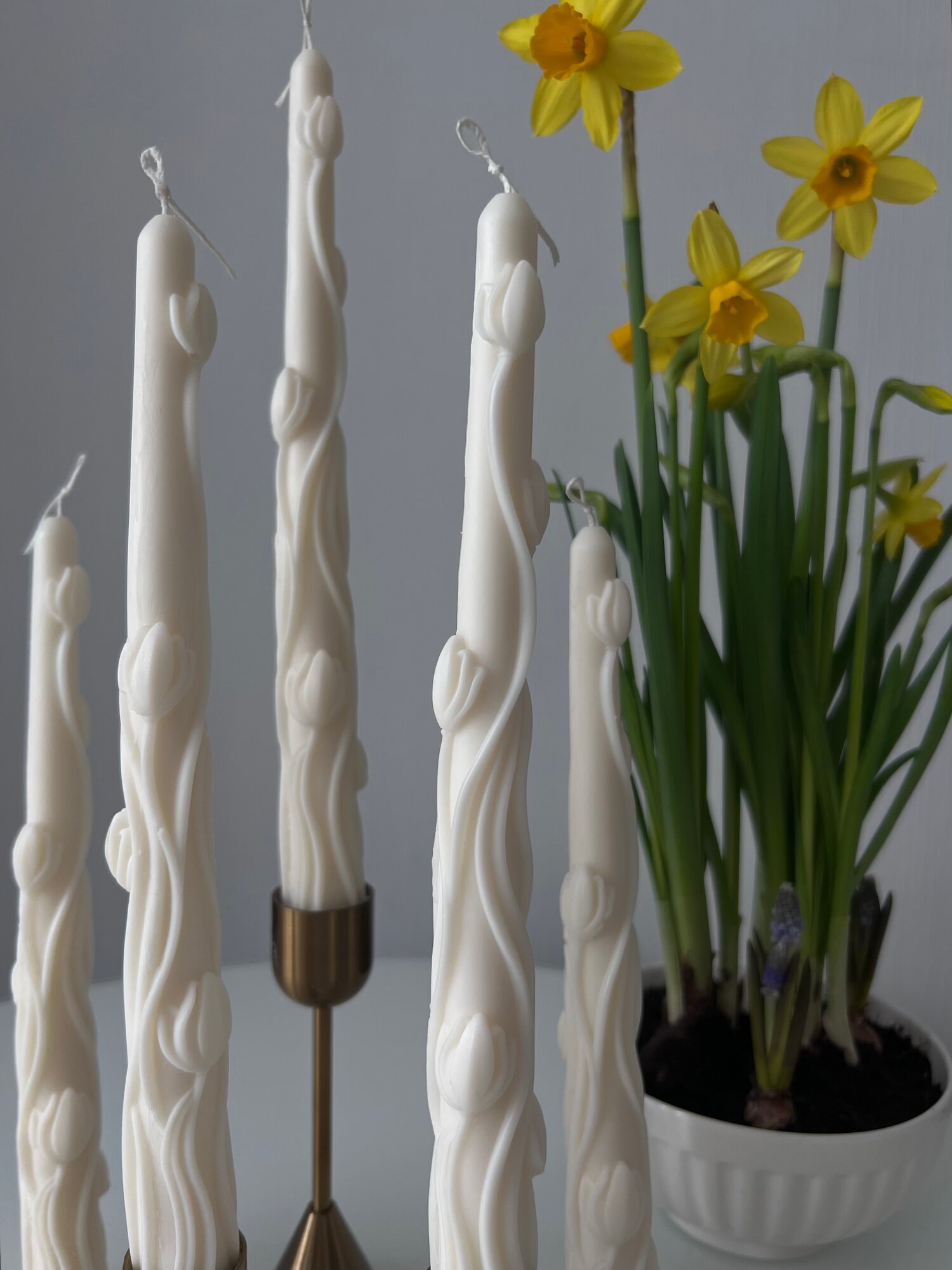 Купить Столовые свечи с тюльпанами из соевого воска, ручная работа, 3 шт