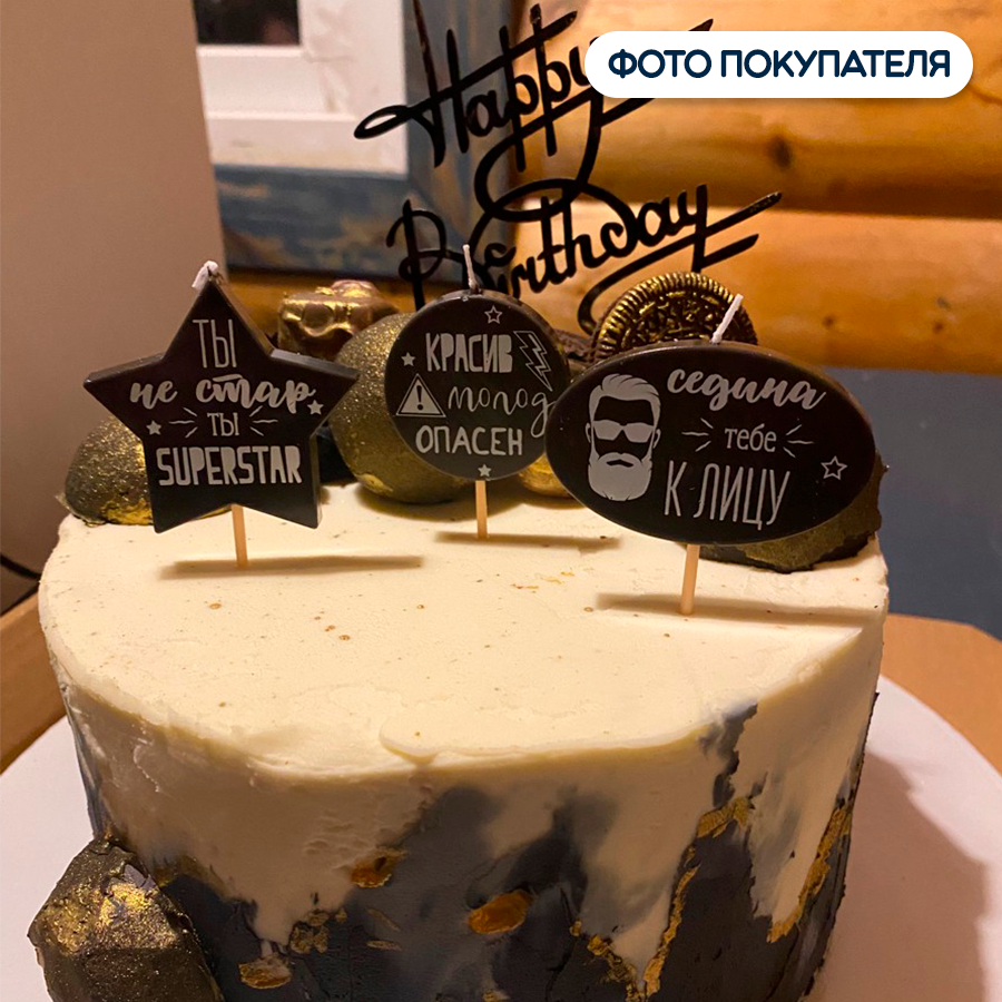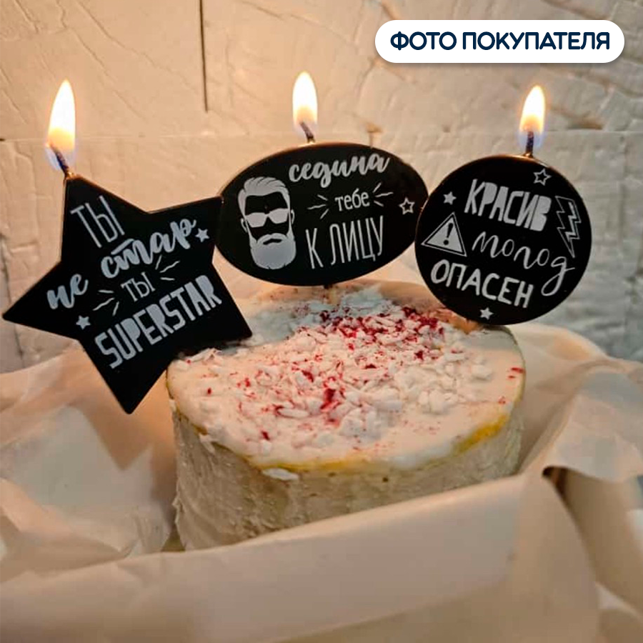 Свечи Riota "Приколы мужские", для торта, фигурные, стеариновые, черно-белые, 3шт интересное: