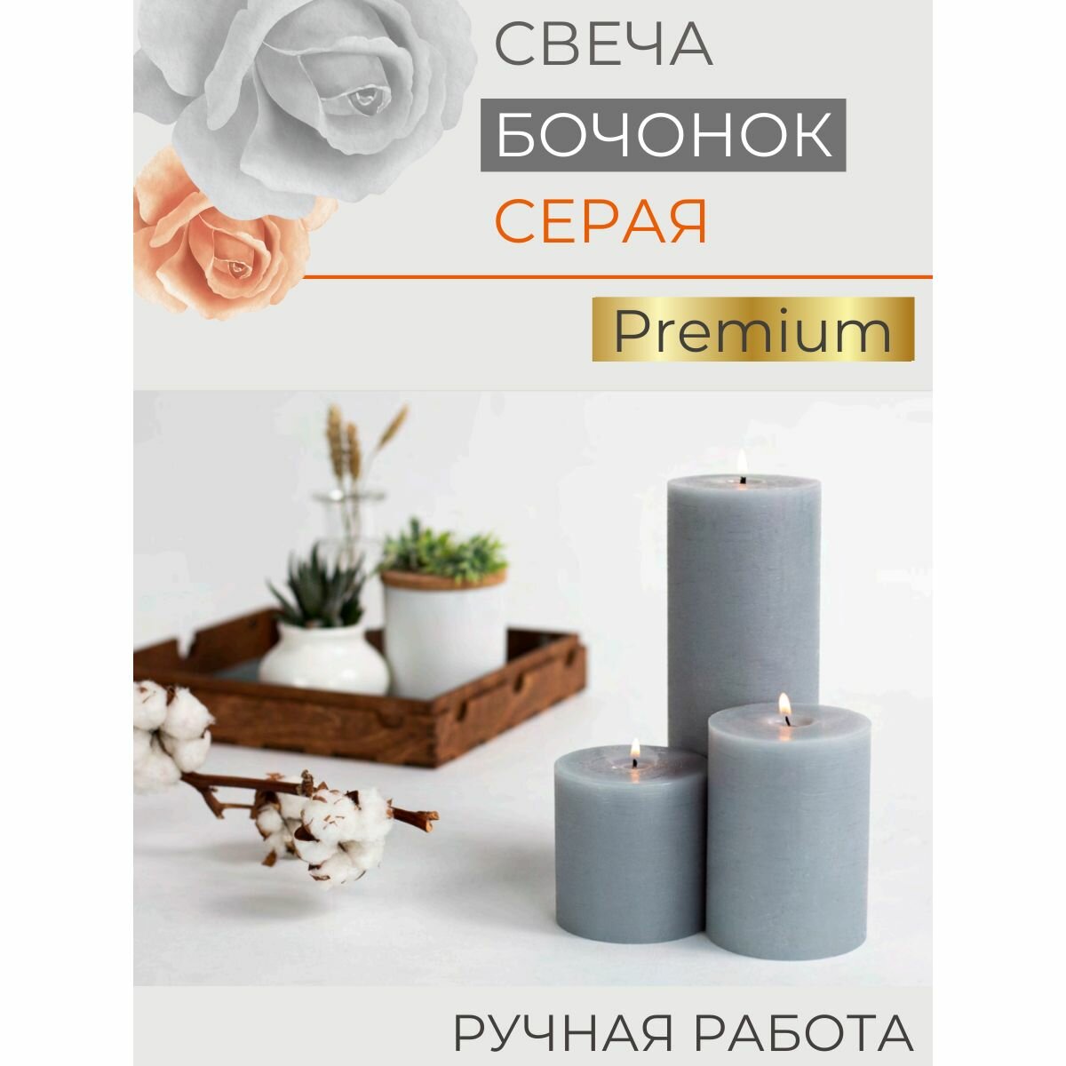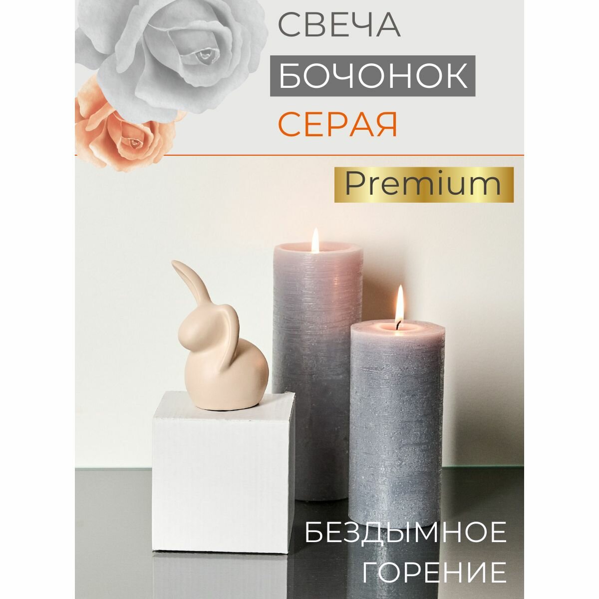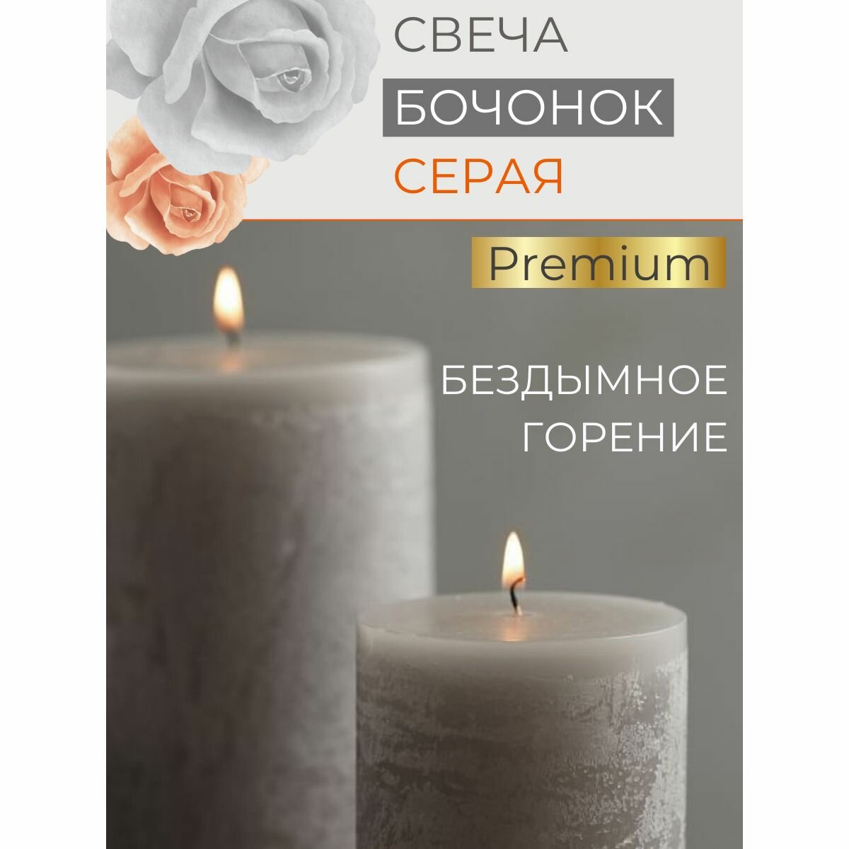 Купить Свеча декоративная Бочонок ручной работы 48х100 мм, премиум-класс, 24 часа, темно-серая, 2 шт.
