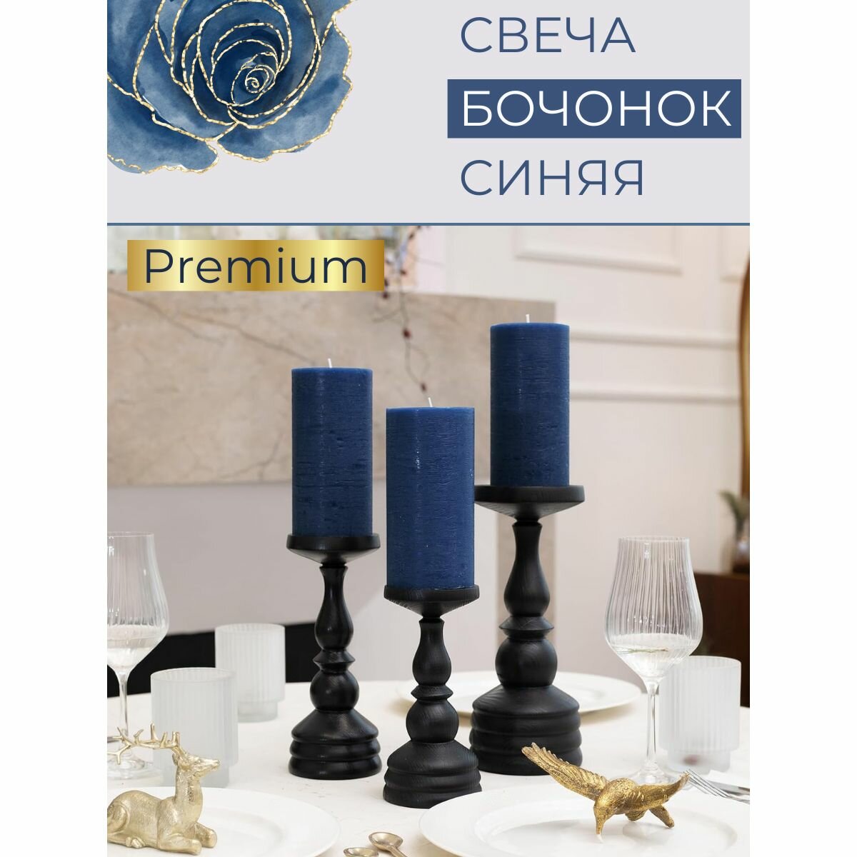 Купить Свеча декоративная Бочонок ручной работы 48х100 мм, премиум-класс, 24 часа, грустно-синяя, 2 шт.
