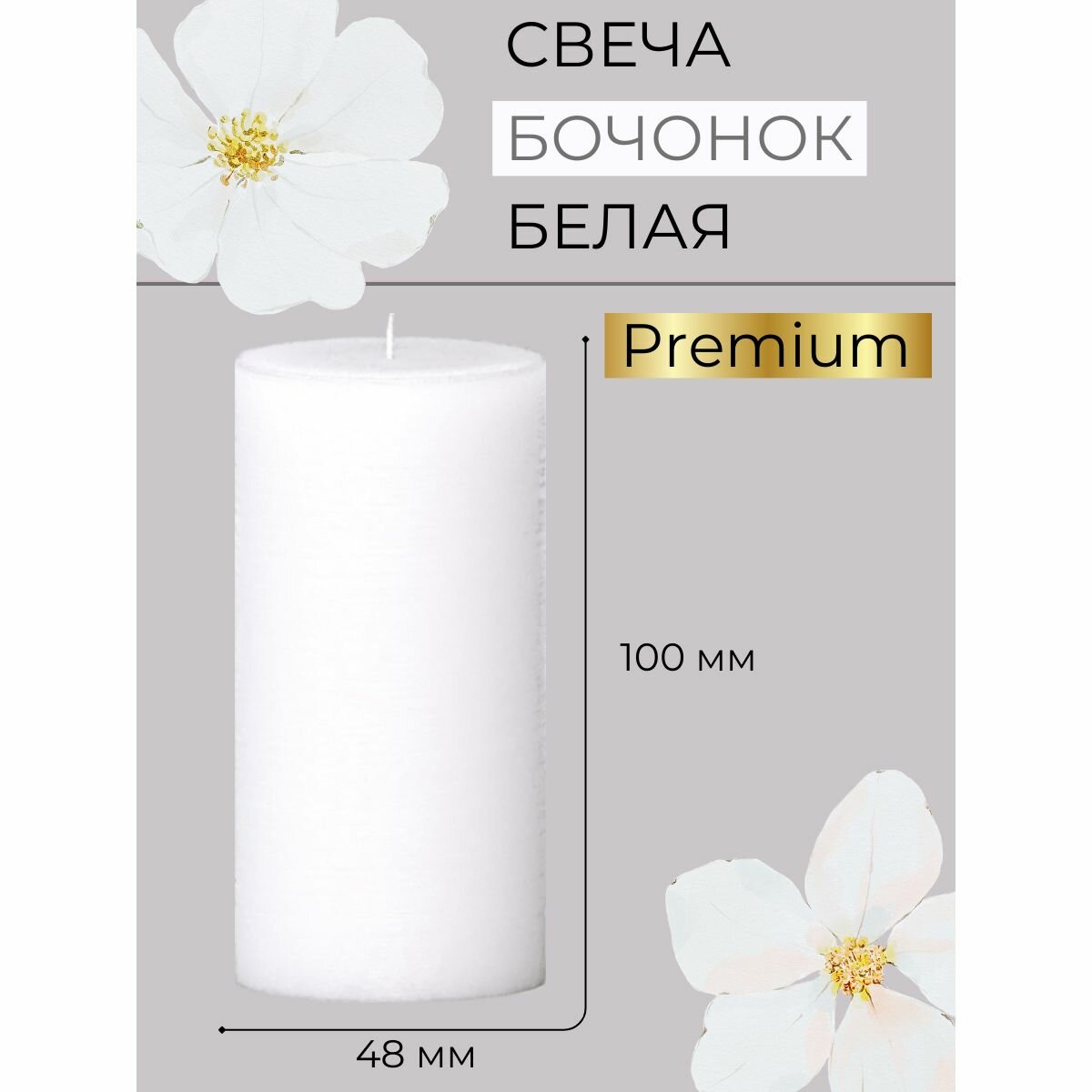 Купить Свеча декоративная Бочонок ручной работы 48х100 мм, премиум-класс, 24 часа, белая