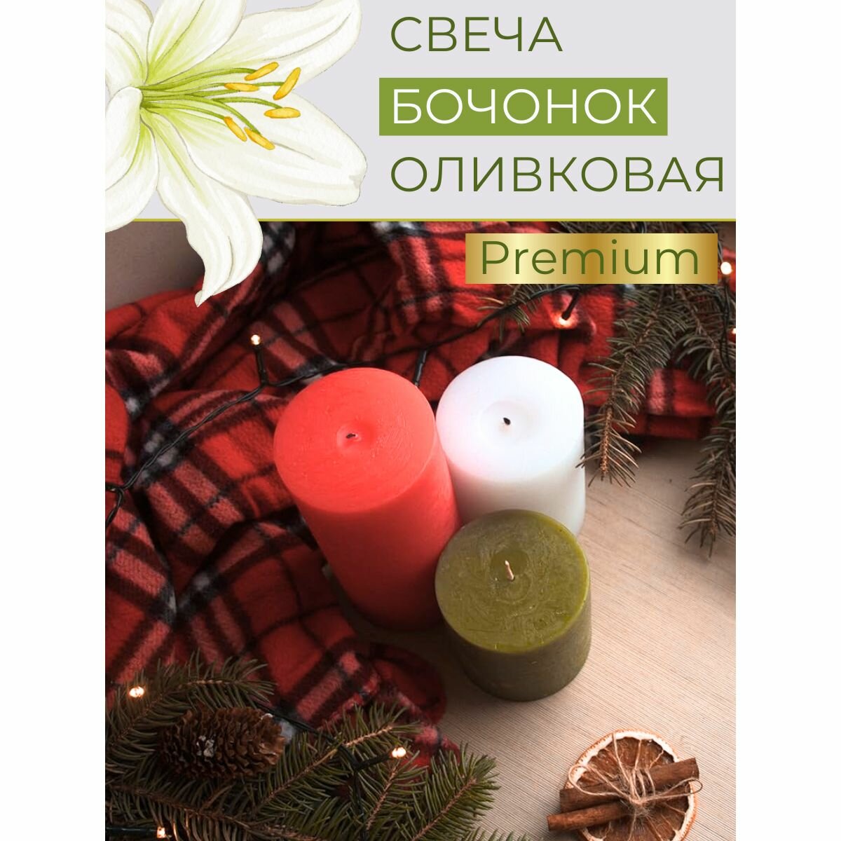 Купить Свеча декоративная Бочонок ручной работы 48х100 мм, премиум-класс, 24 часа, оливковая, 2 шт.
