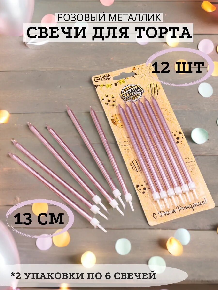 Купить Набор свечей Страна Карнавалия "Для торта", для декора, прямые, розовый металлик, 13 см, 12 штук