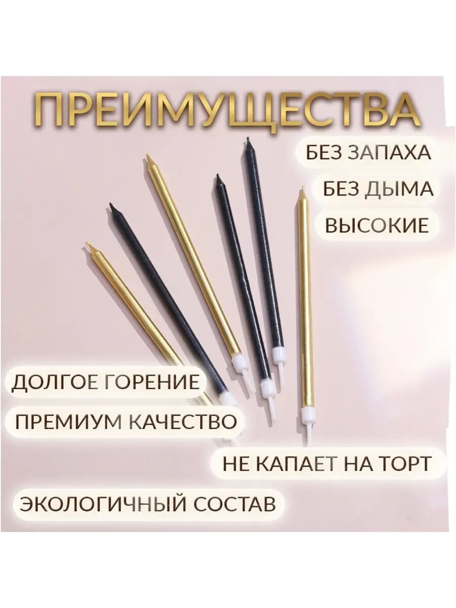 СохранитьНабор свечей Страна Карнавалия "Для торта", прямые, золотисто-черные, 13 см, 12 штук интересное:
