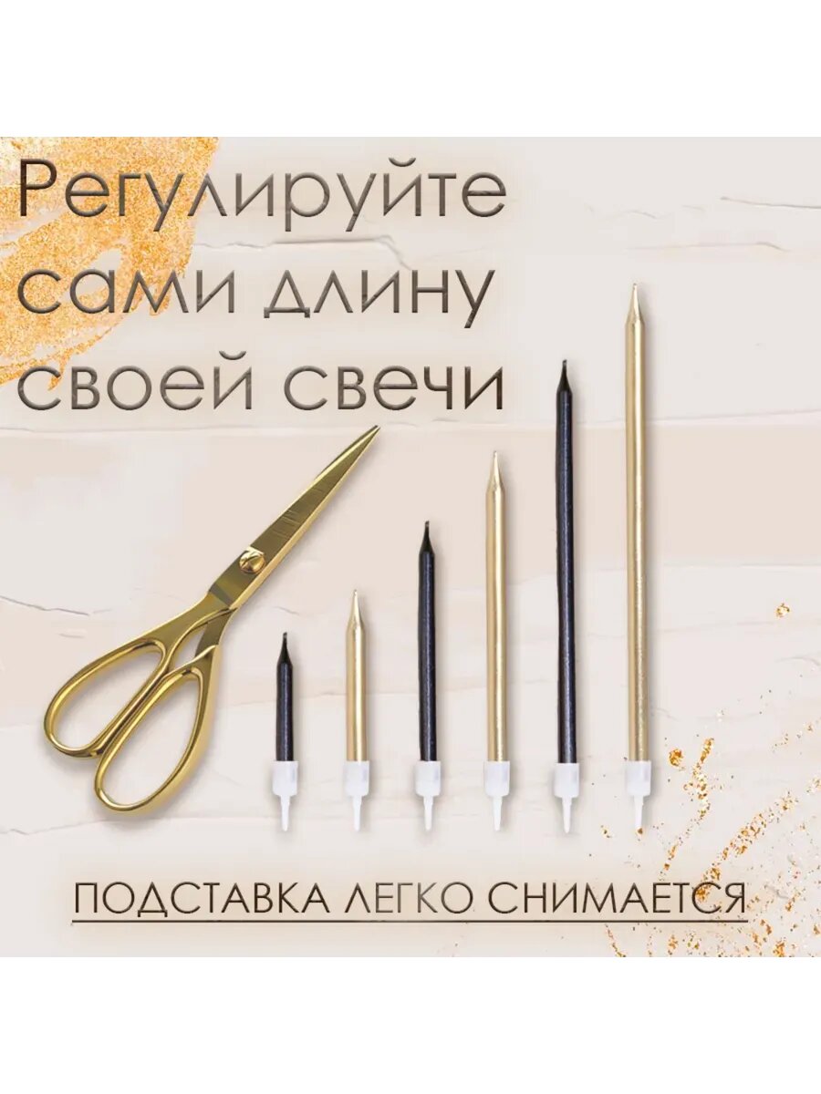 Набор свечей Страна Карнавалия "Для торта", для декора, прямые, золотой металлик, 13 см, 12 штук