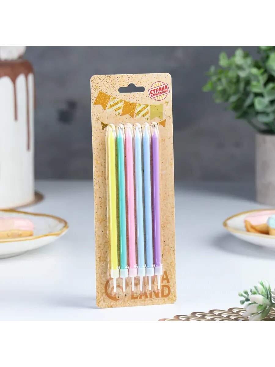 Купить Свечи Страна Карнавалия, для торта, 12 штук, прямые, пастельные, разноцветные, 13 см