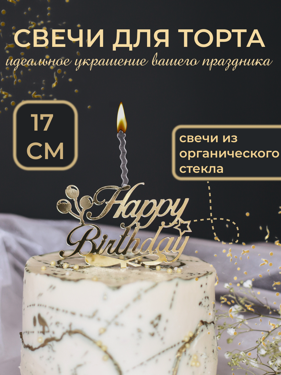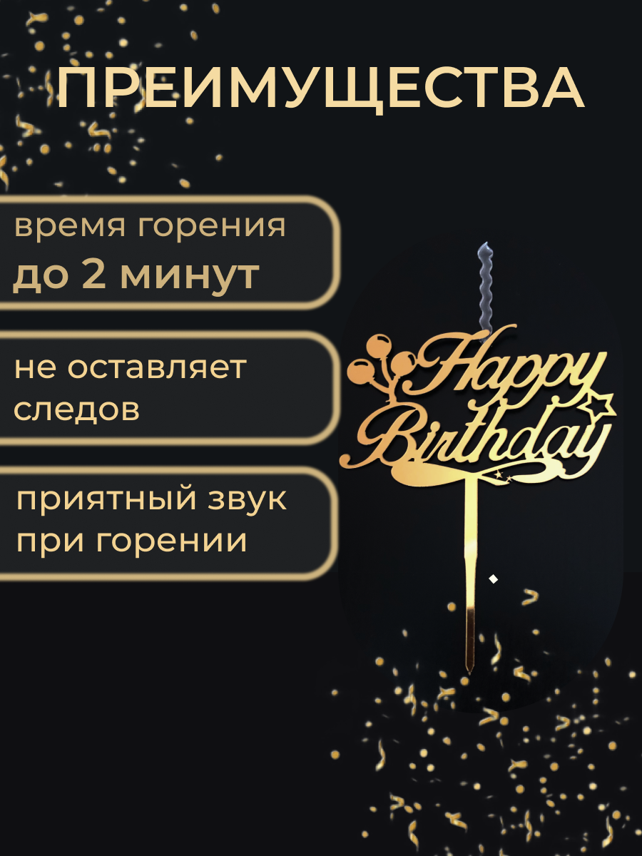 Свеча топпер для торта Happy Birthday интересное: