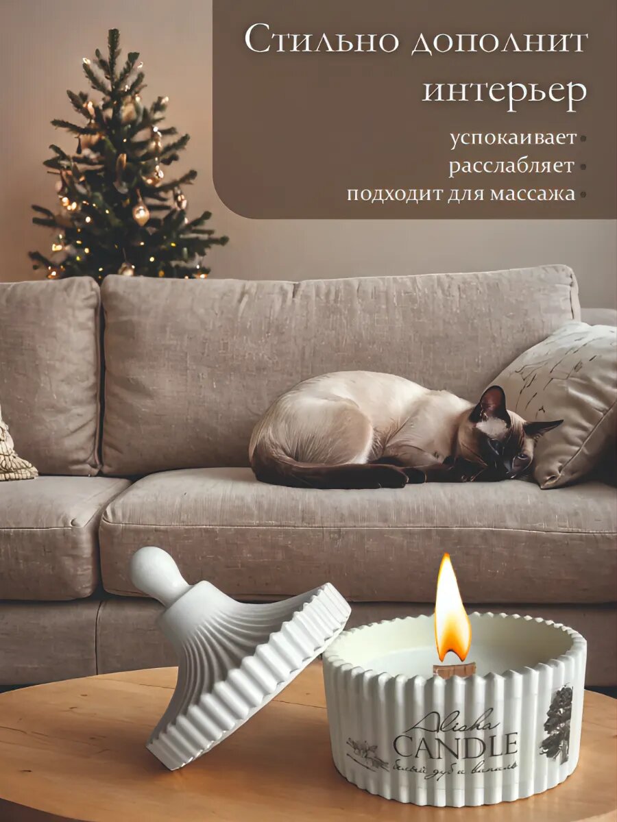 Свеча ароматическая из кокосового воска с деревянным фитилем в гипсовой шкатулке, с древесным сладким ароматом интересное: