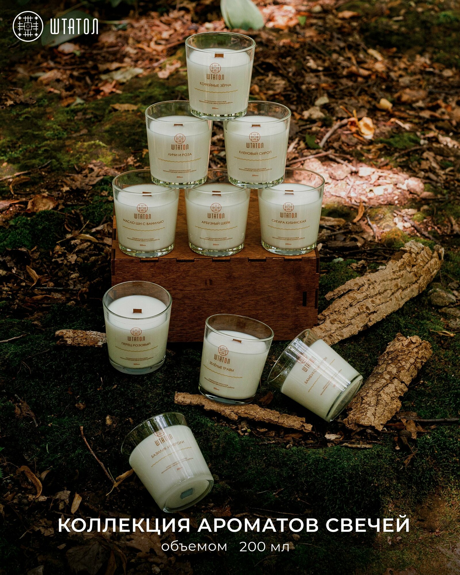 "Масло ши и ваниль" / свечки штатол в стакане / свеча восковая в стакане с деревянным фитилем / аромасвеча 200 мл. / ароматические свечи ручной работы