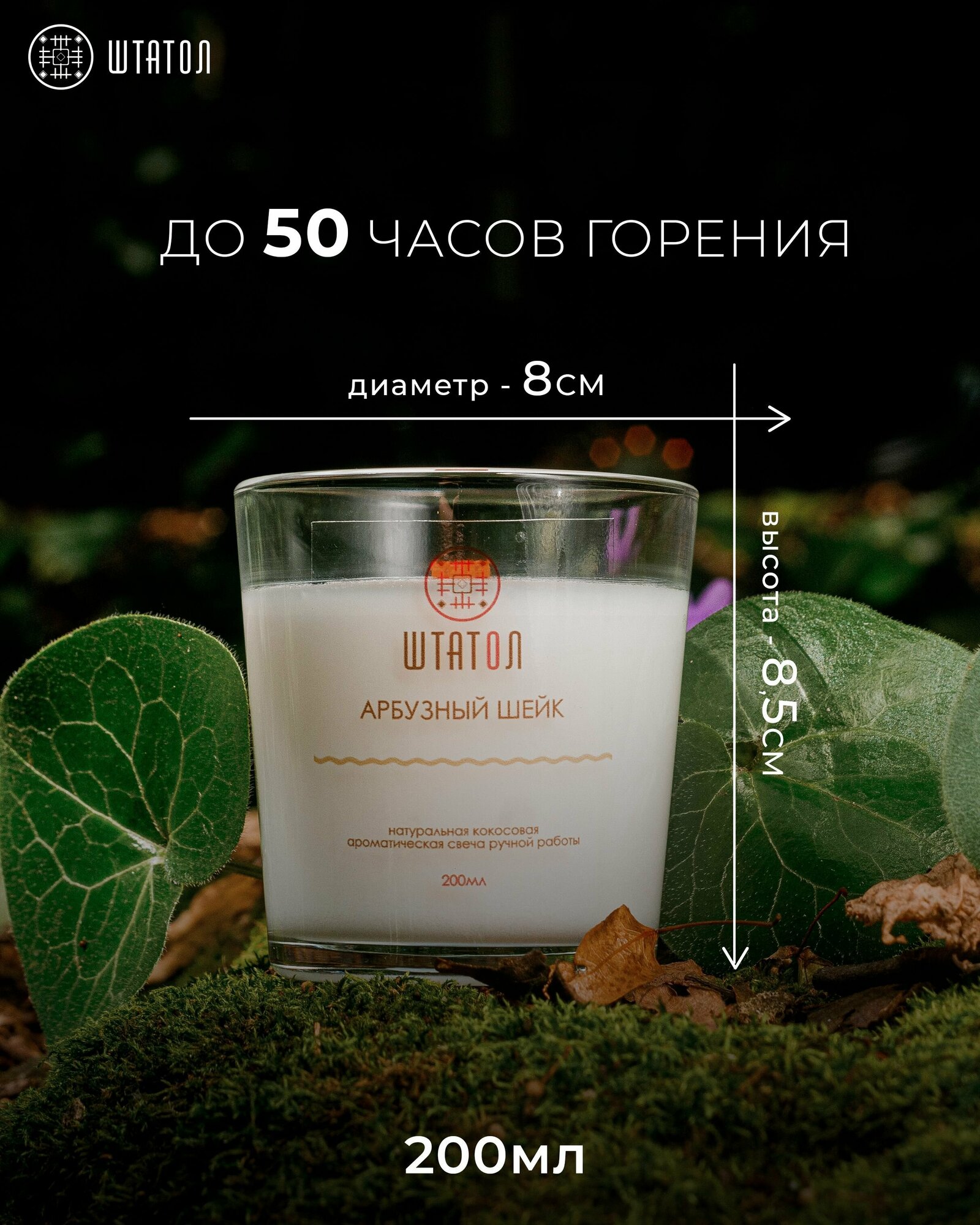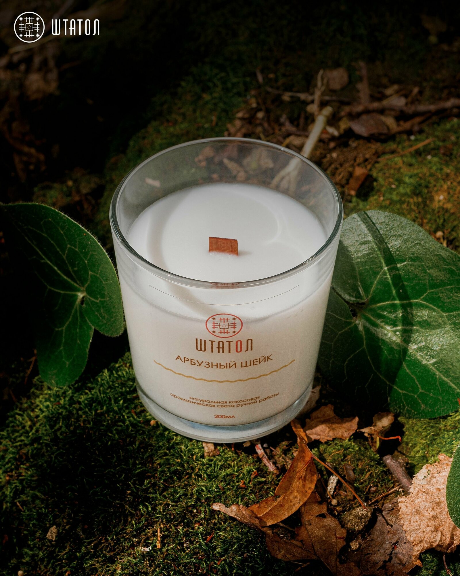 Купить "Арбузный шейк" / свеча ароматная штатол для дома / ароматическая свеча в стеклянном стакане 200 мл. / деревянный фитиль / ароматный воск