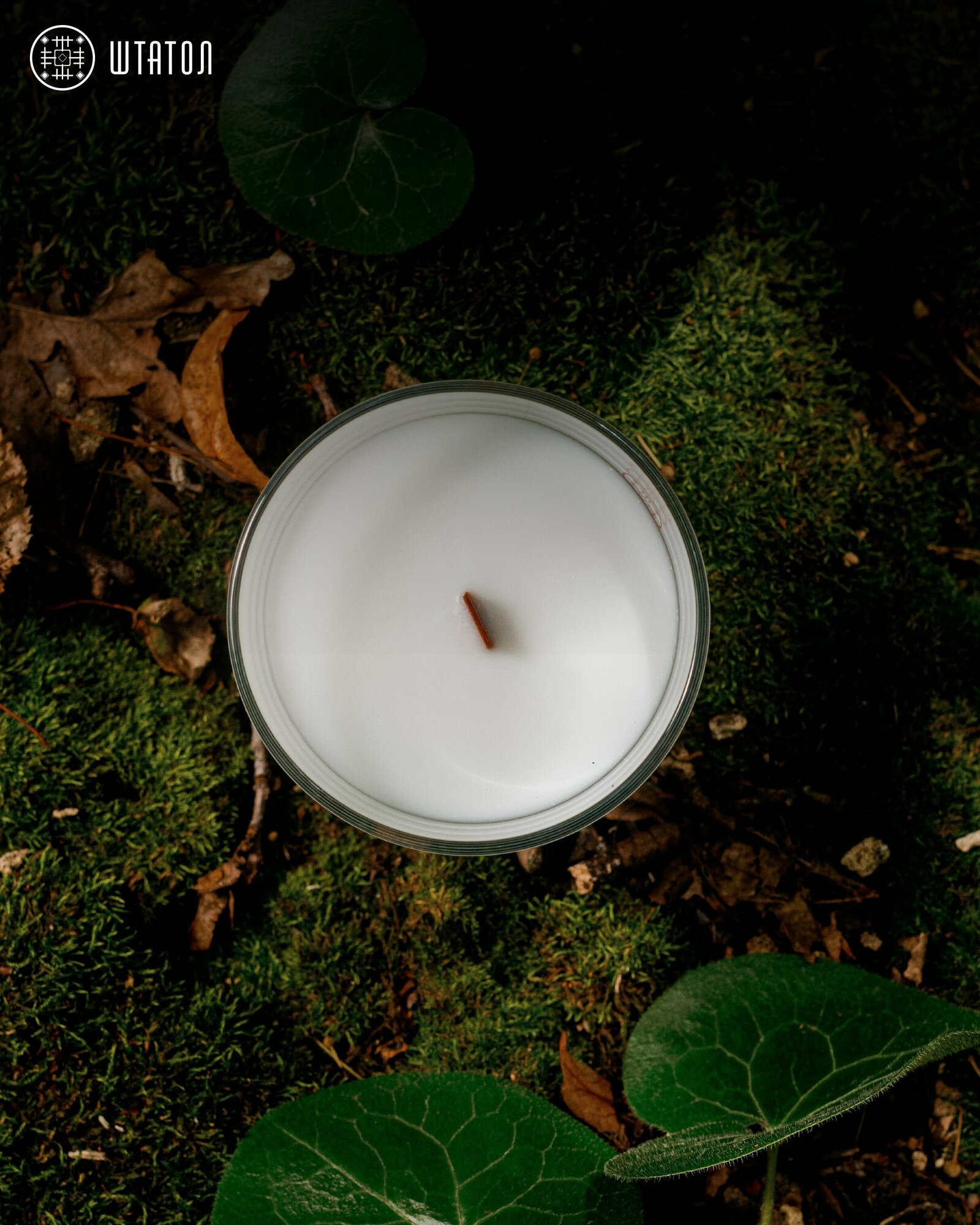 "Бамбуковый крем" / свеча ароматная штатол для дома / ароматическая свеча в стеклянном стакане 200 мл. / деревянный фитиль / ароматный воск