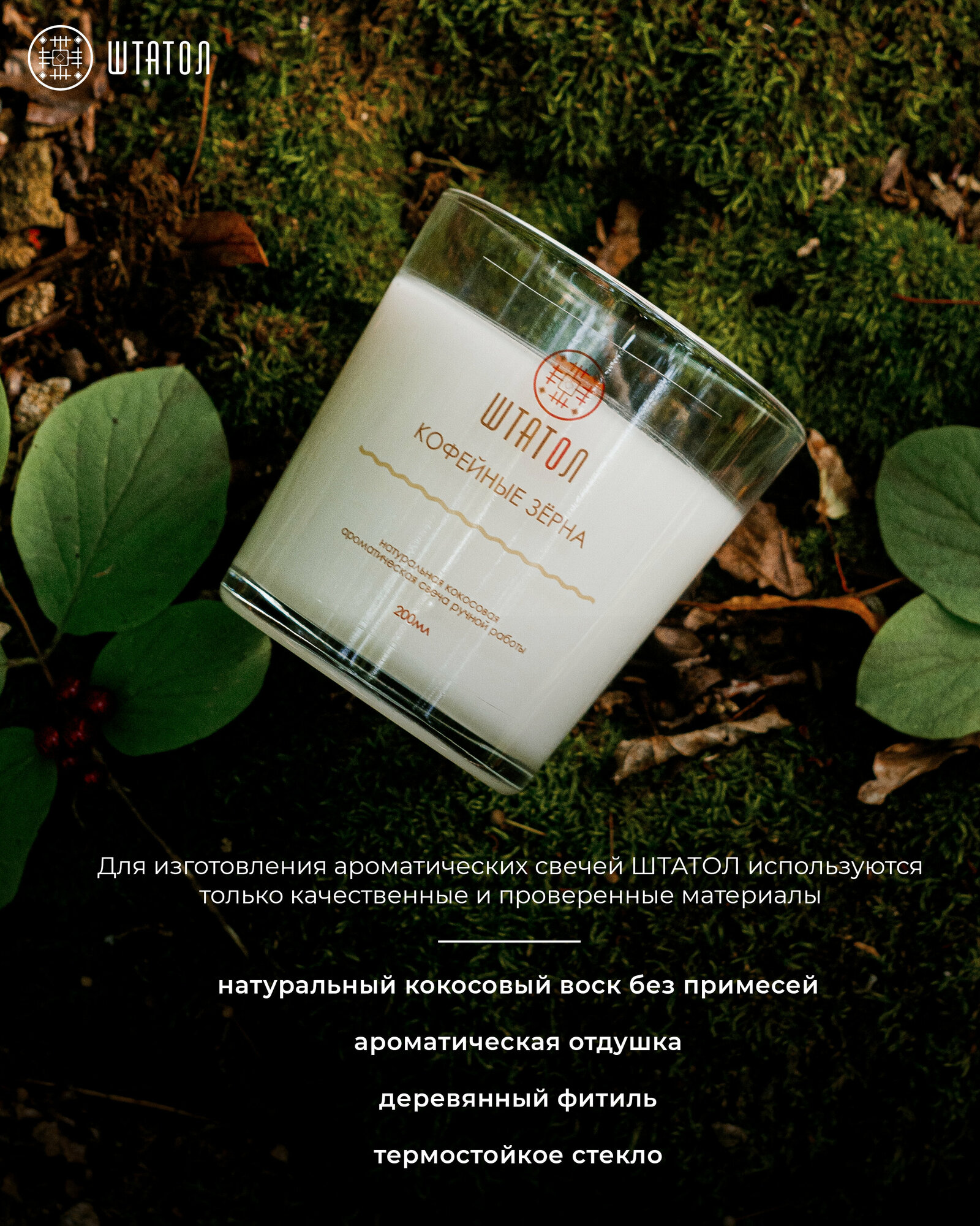 Сохранить"Кофейные зёрна" / свечки штатол в стакане / свеча восковая в стакане с деревянным фитилем / аромасвеча 200 мл. / ароматические свечи ручной работы интересное: