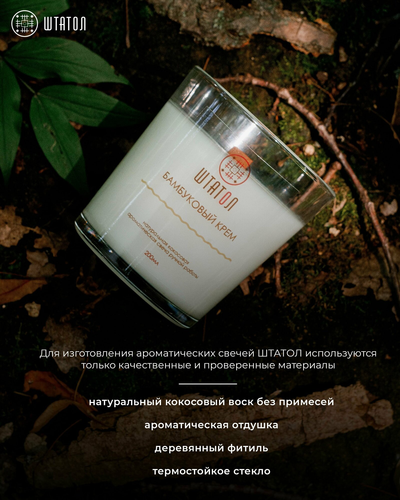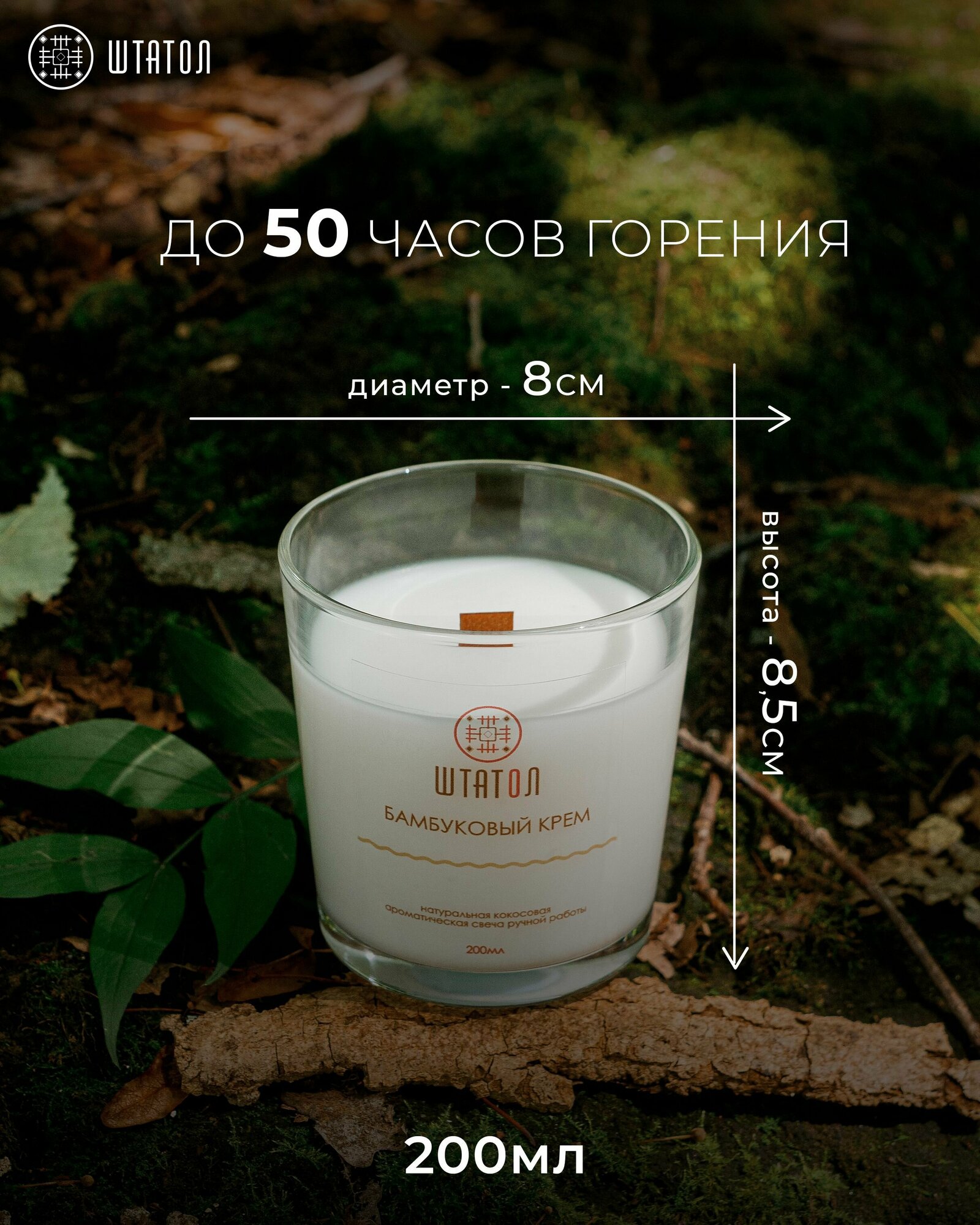 Сохранить"Бамбуковый крем" / свеча ароматная штатол для дома / ароматическая свеча в стеклянном стакане 200 мл. / деревянный фитиль / ароматный воск интересное: