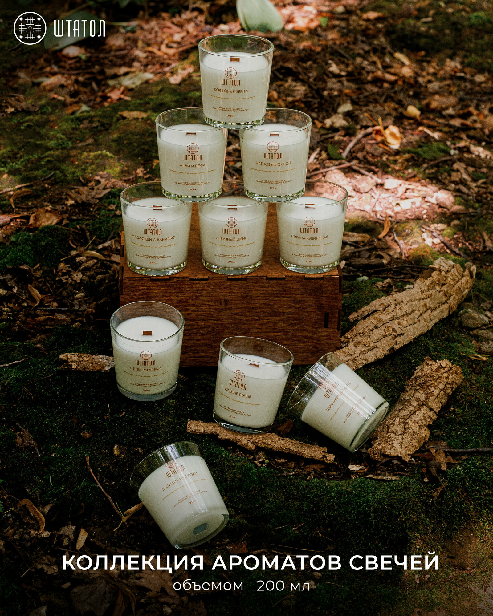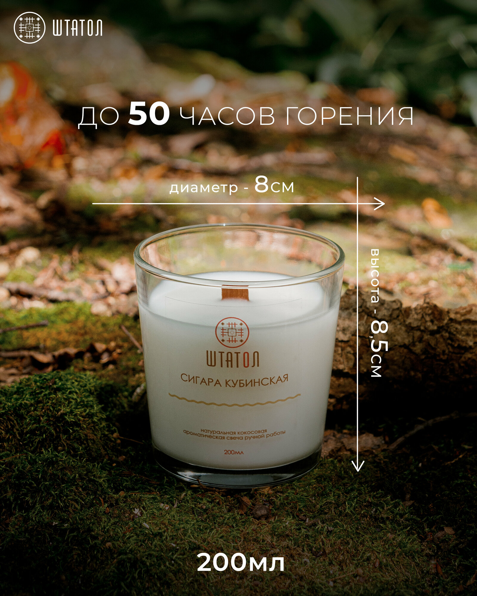 Купить "Табак из Кубы" / свечки штатол в стакане / свеча восковая в стакане с деревянным фитилем / аромасвеча 200 мл. / ароматические свечи ручной работы