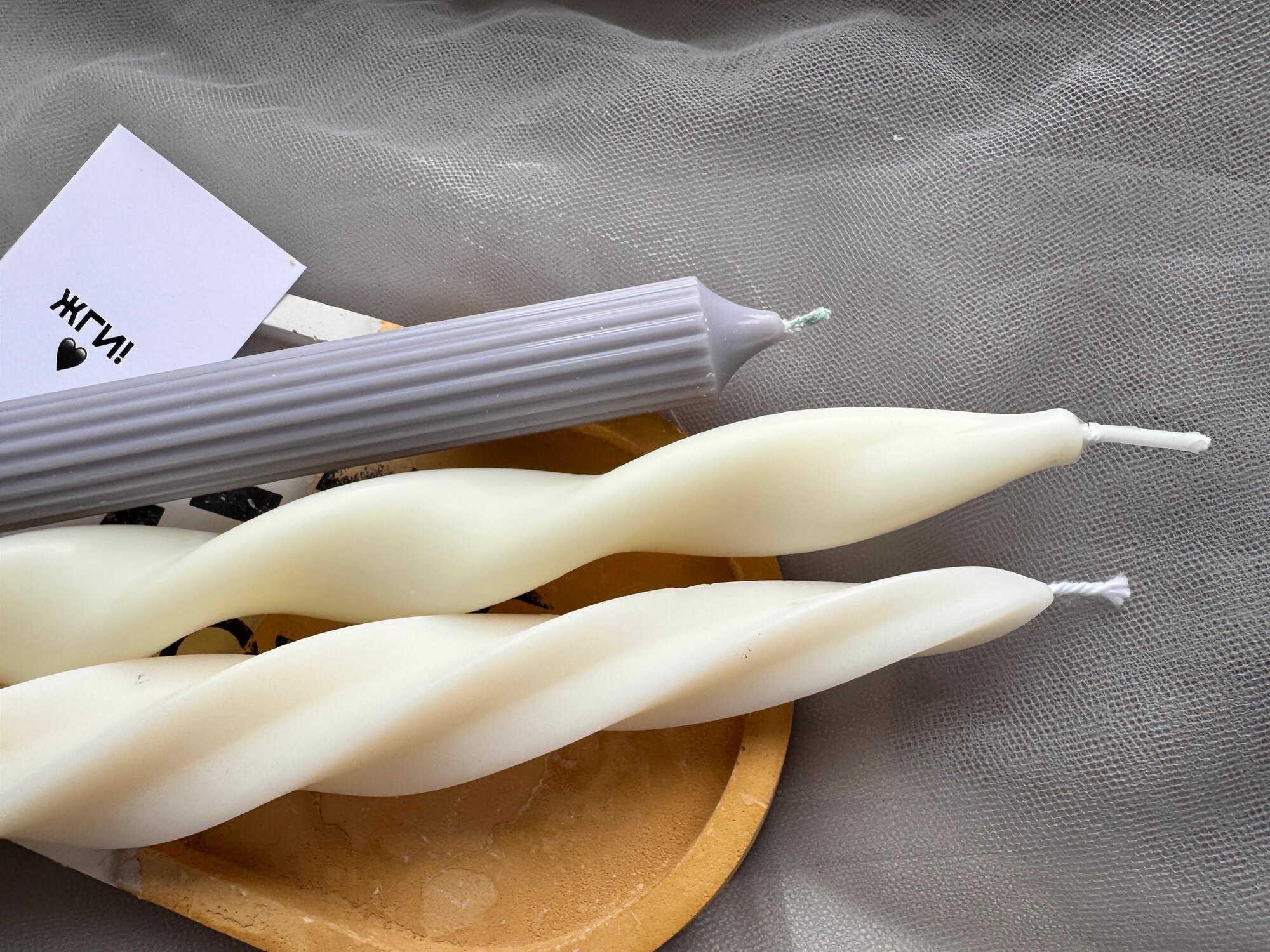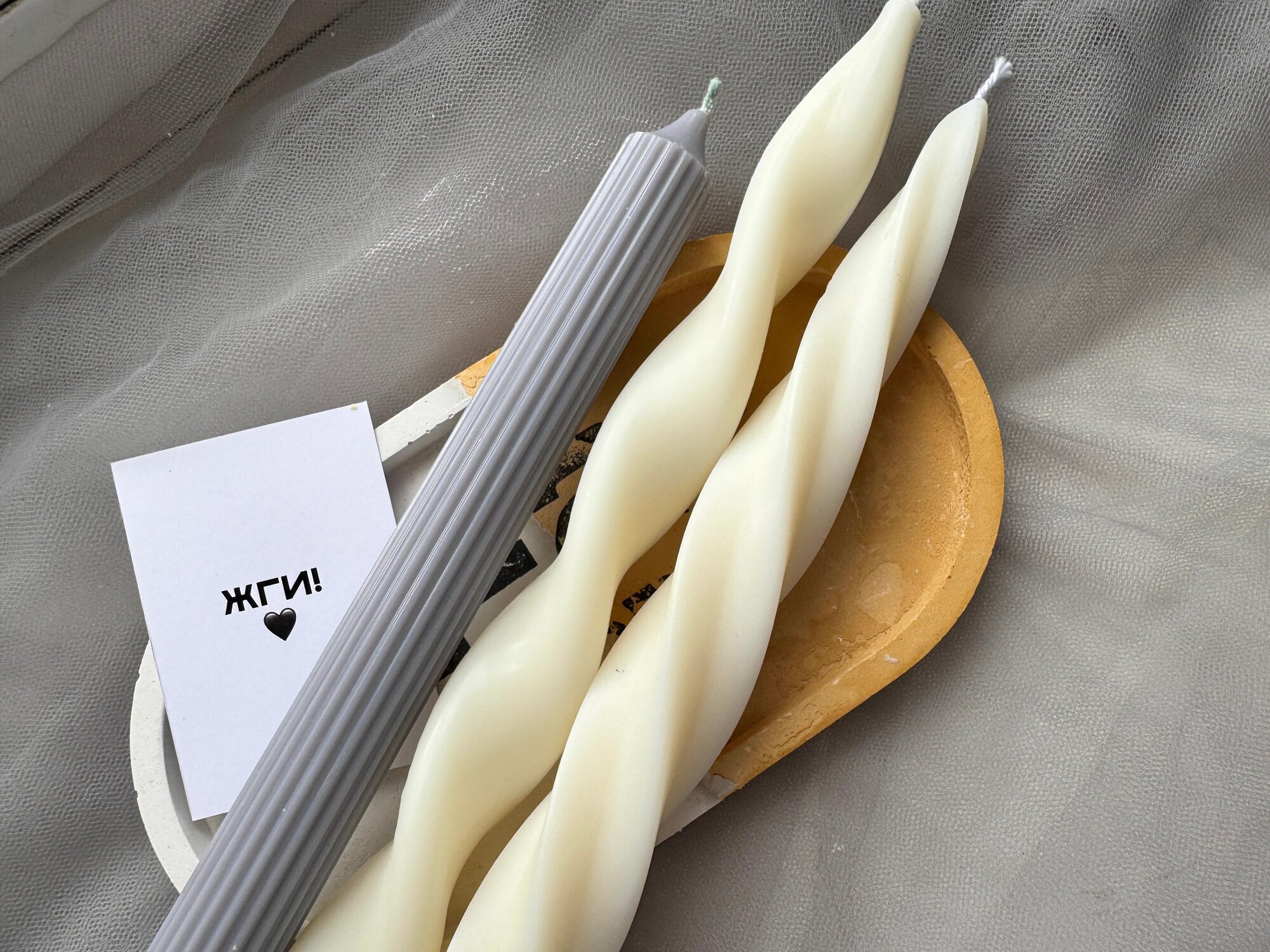Столовые эко свечи 12-22, ручной работы, оливковый воск, с хлопковым фитилем, набор 3шт интересное: