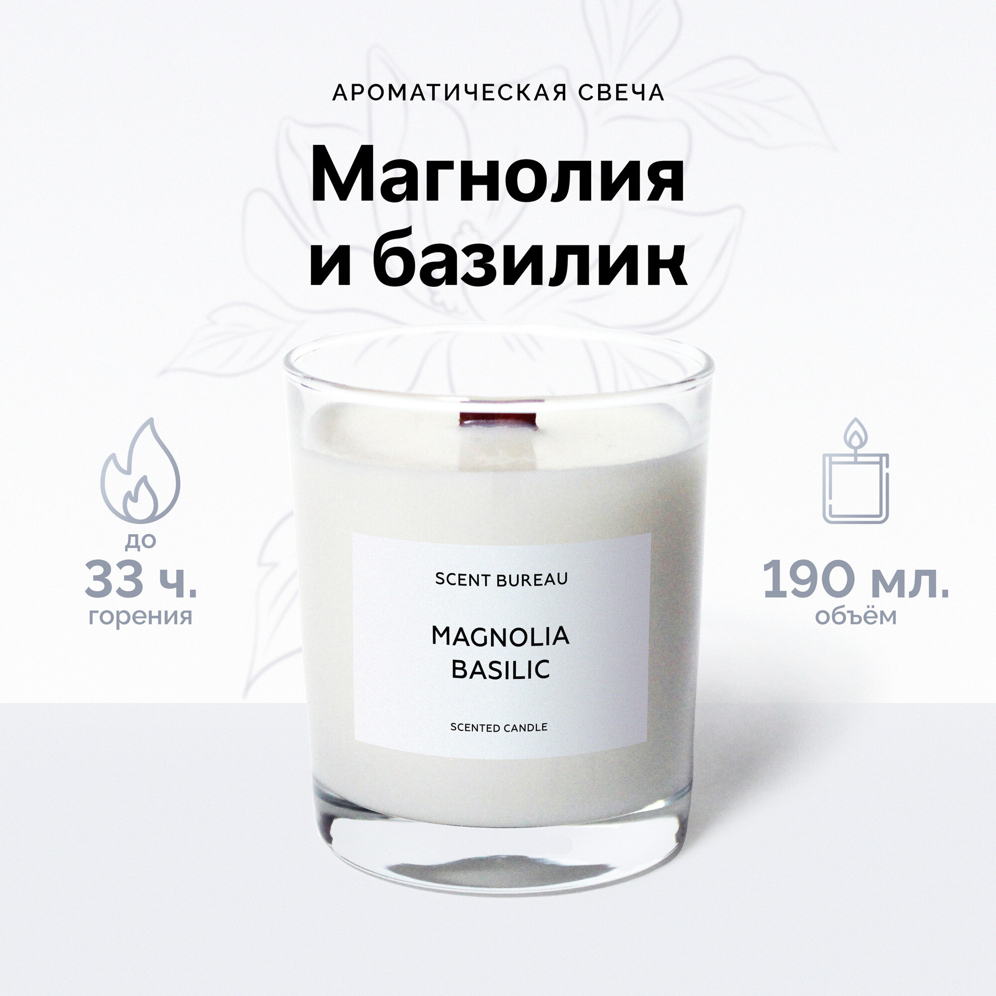 Купить Scent Bureau Classic Series Магнолия и базилик, ароматическая свеча 190 мл