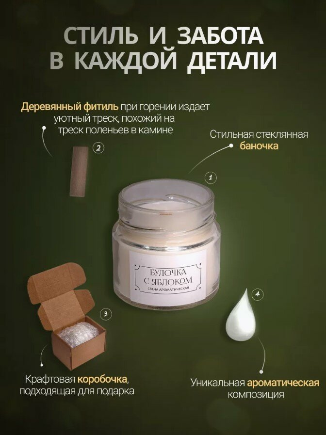 Свеча ароматическая "Булочка с яблоком" в стеклянной баночке интересное: