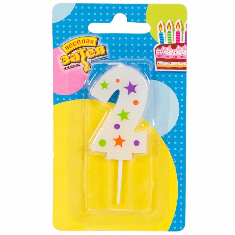 Свеча Riota "Цифра 2", парафиновая, с разноцветными звёздами, 5x5 см интересное: