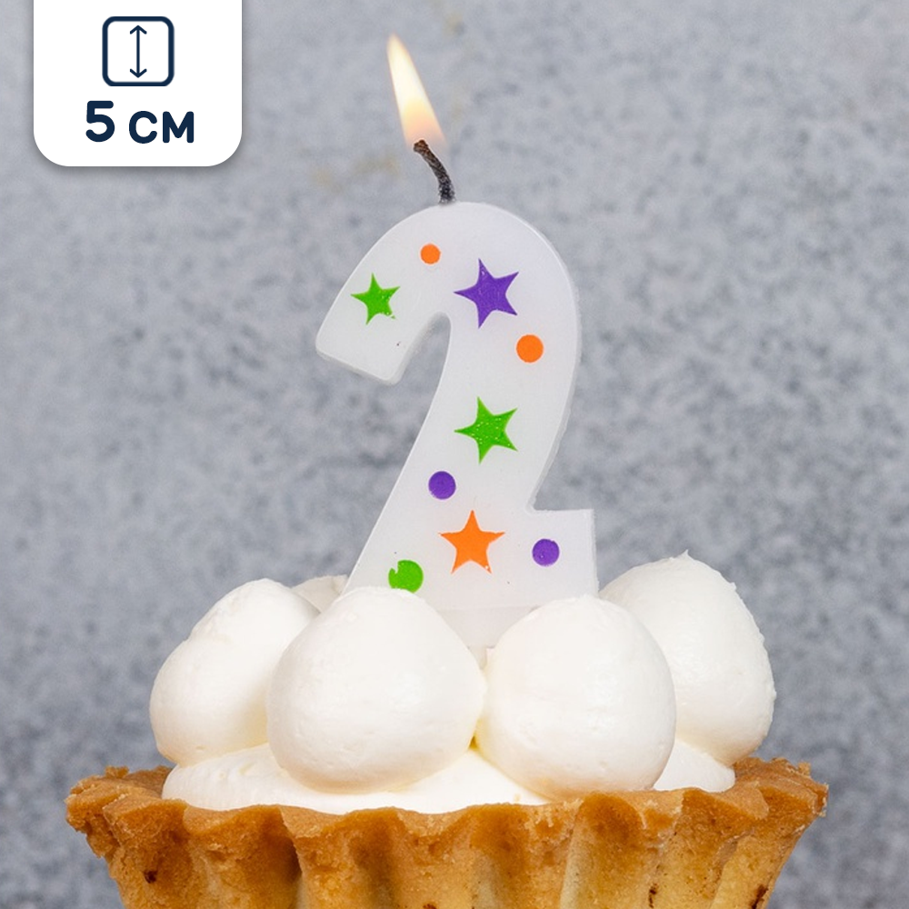 Купить Свеча Riota "Цифра 2", парафиновая, с разноцветными звёздами, 5x5 см