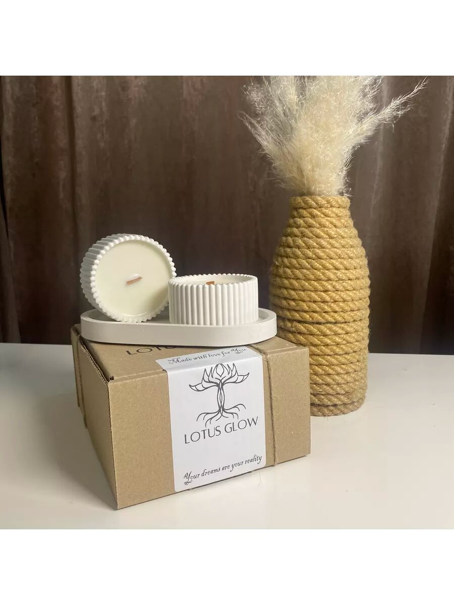 Набор ароматических свечей, свечи ароматические шкатулка, набор свечей аромат "Лайм и Имбирь" Lotus Glow, ваза в подарок