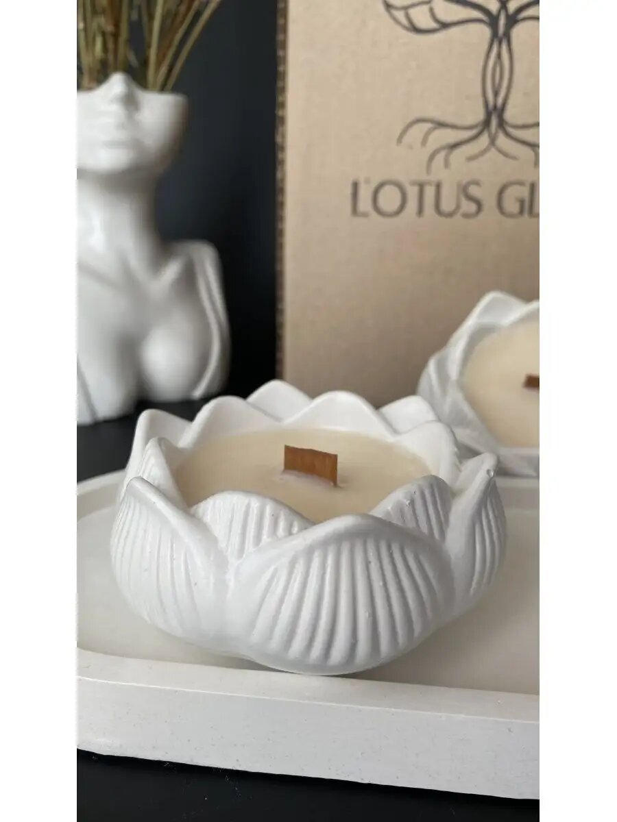 Купить Ароматические свечи Lotus Glow, в гипсе, с деревянным фитилём, розовый аромат, 200 мл