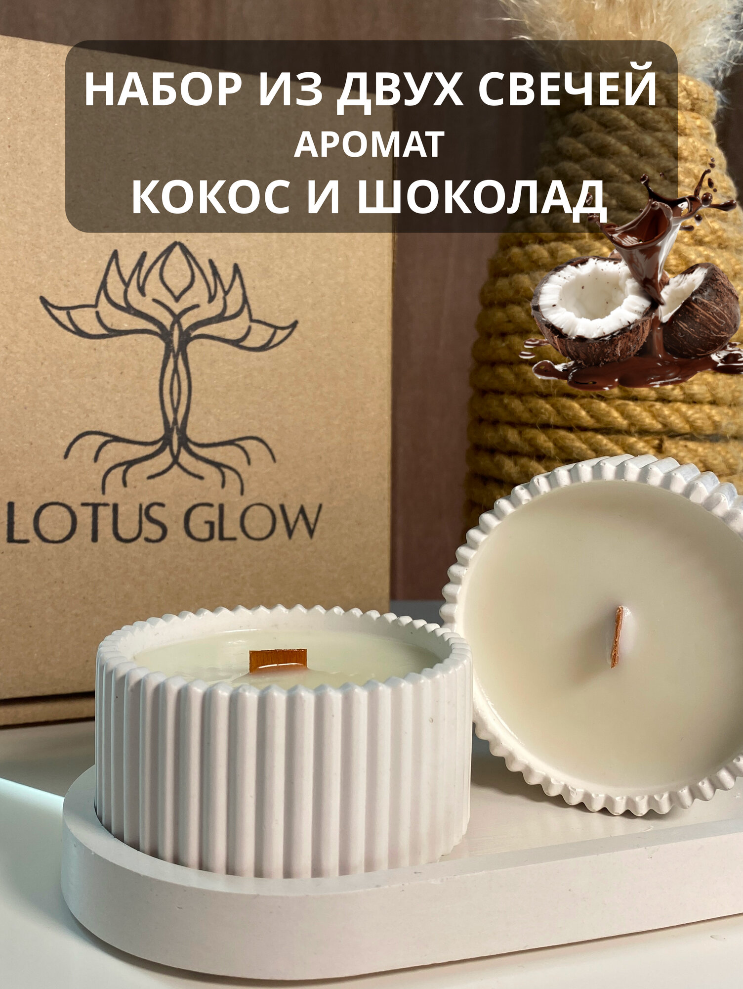 Купить Набор ароматических свечей шкатулка в гипсе, свечи ароматические аромат "Кокос и шоколад", Lotus Glow
