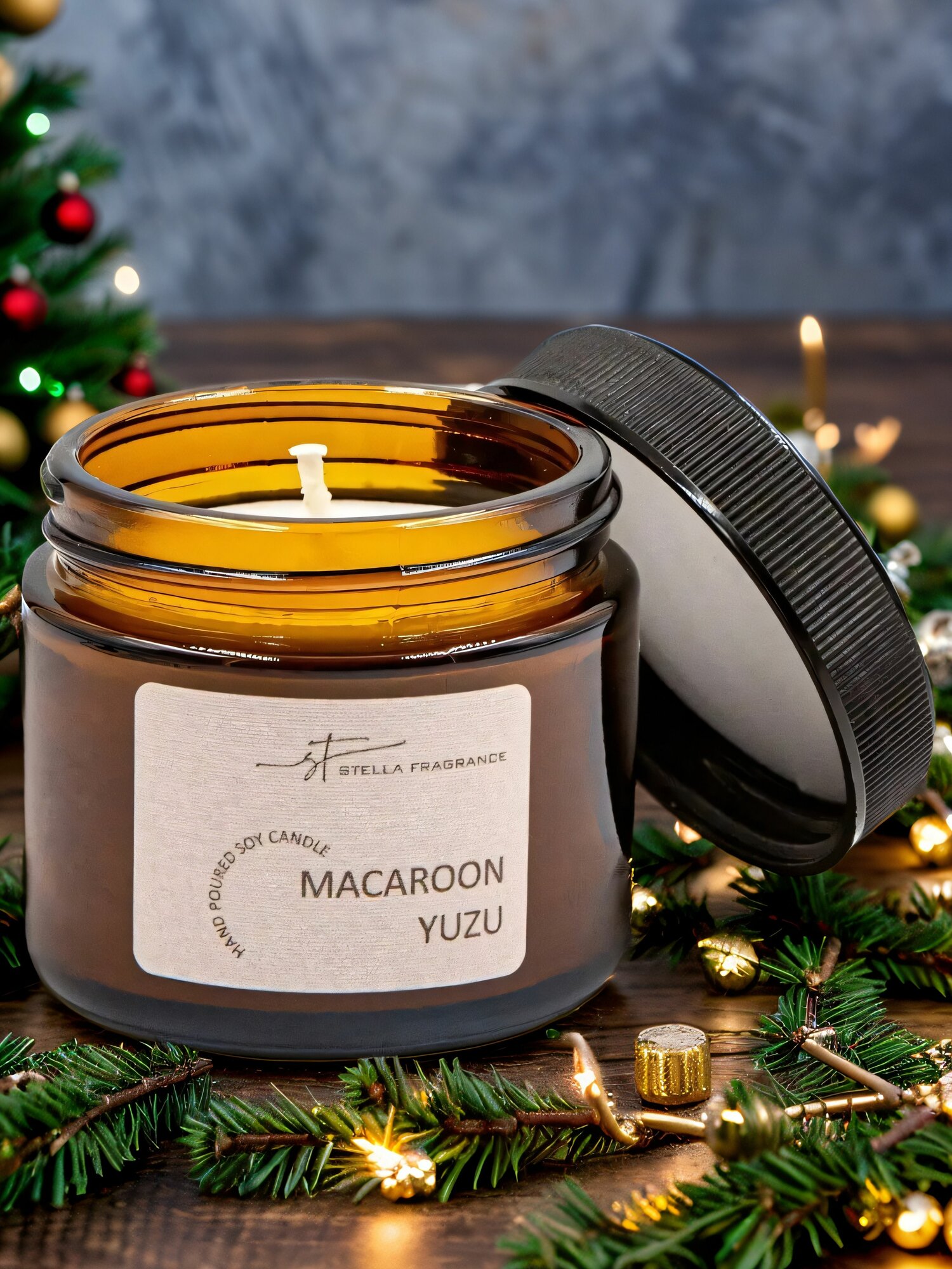 Купить Свеча ароматическая декоративная с фитилем Stella Fragrance с ароматом MACAROON YUZU, Макарун и Юзу, 50 гр.
