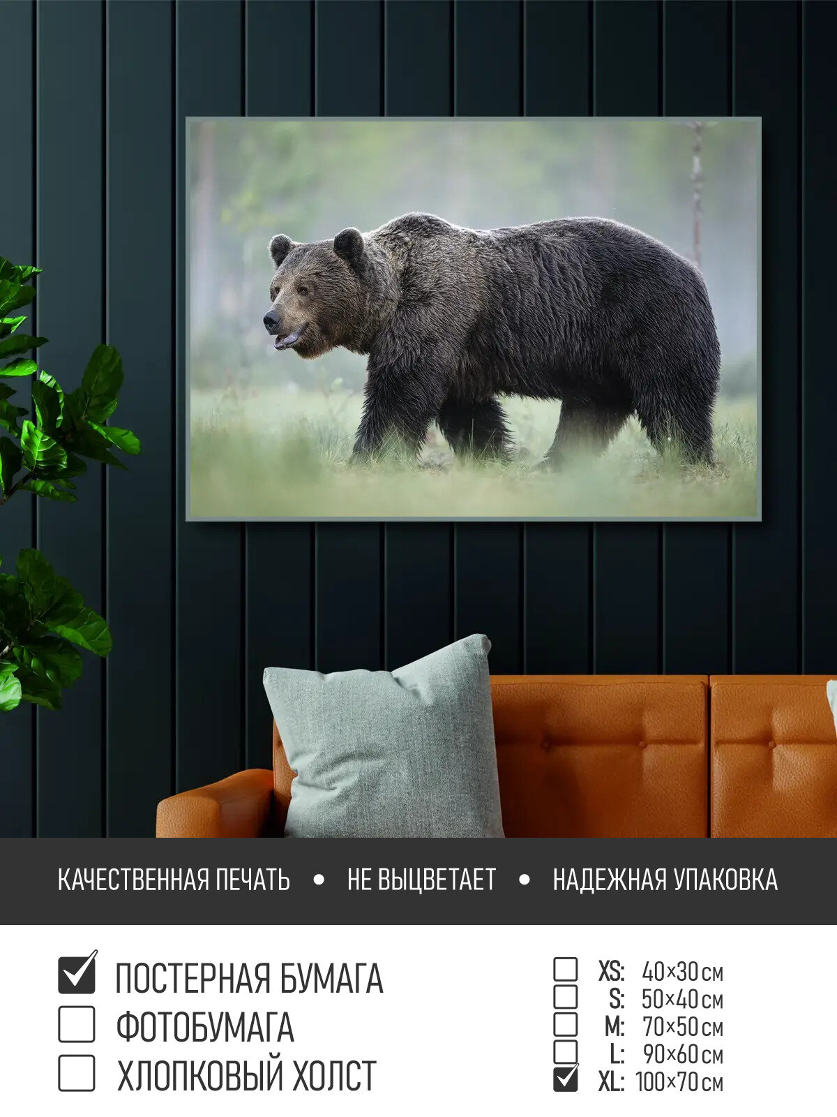 Постер на фотобумаге Медведь в туманном лесу, 100х70 см ПолиЦентр, цифровая фотопечать