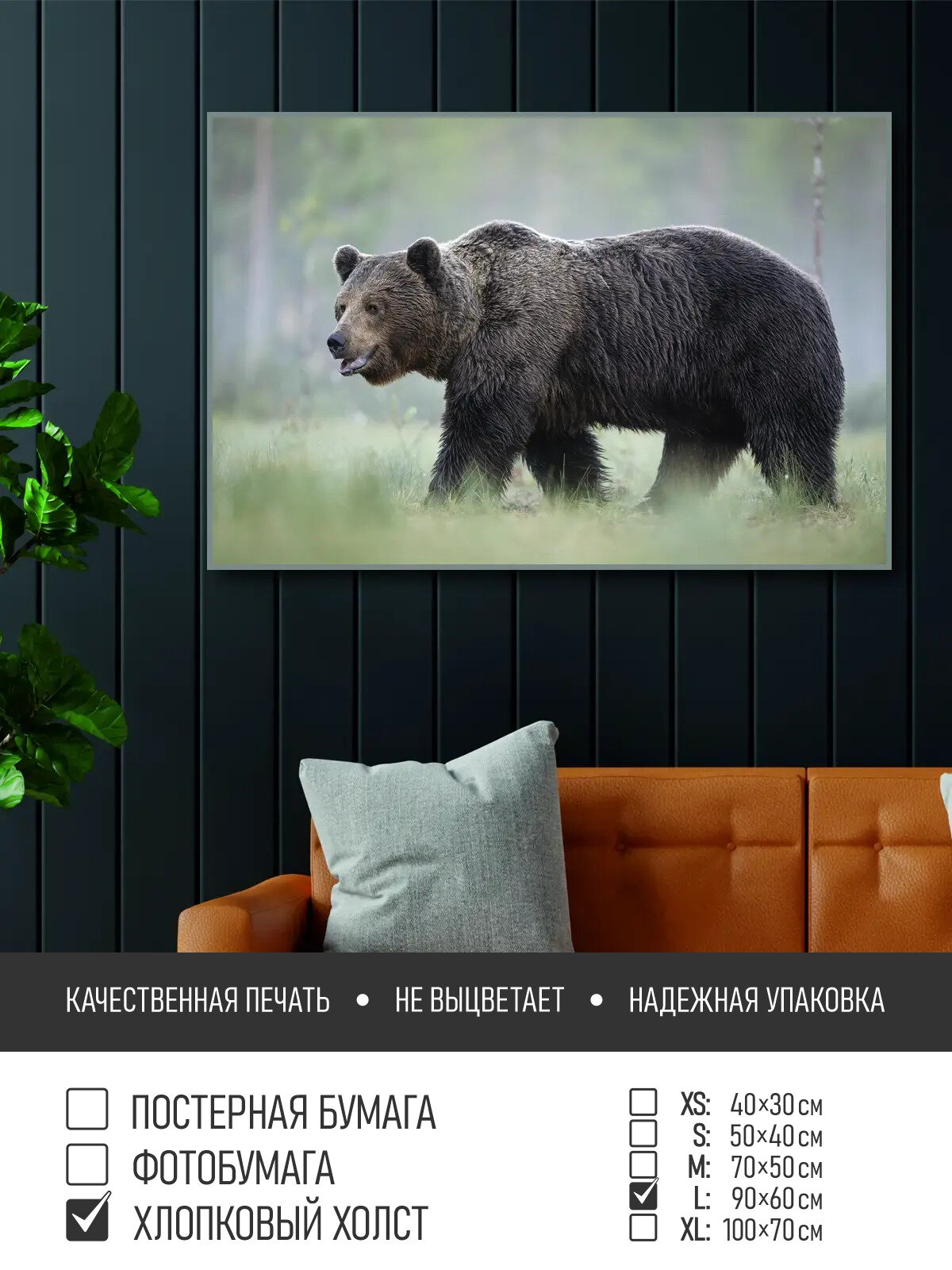 СохранитьПостер на холсте Медведь в туманном лесу, 90х60 см ПолиЦентр, цифровая фотопечать интересное: