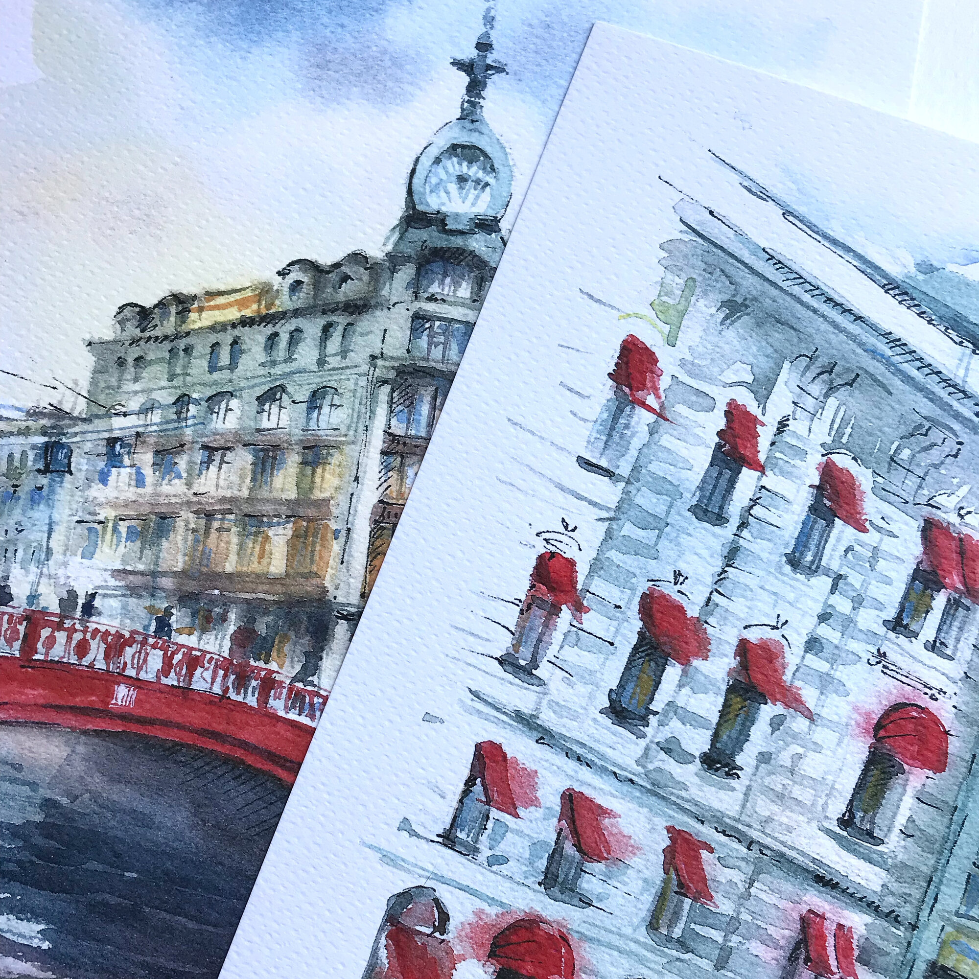 Постеры для интерьера от Alexandra Iv. ,"Санкт-Петербург. Графика", набор из 4 штук, формат А4
