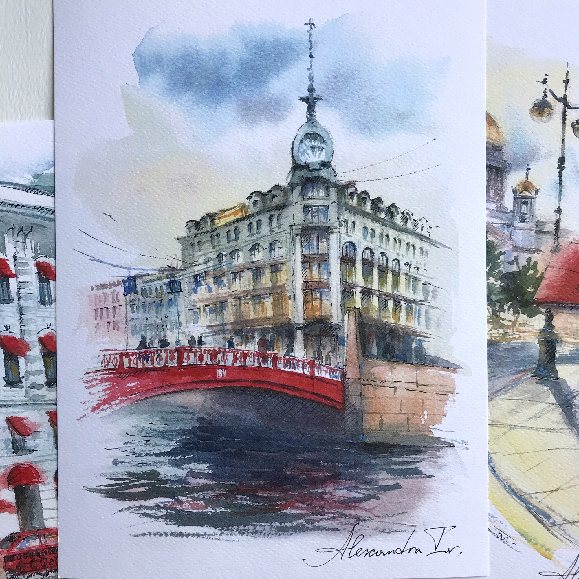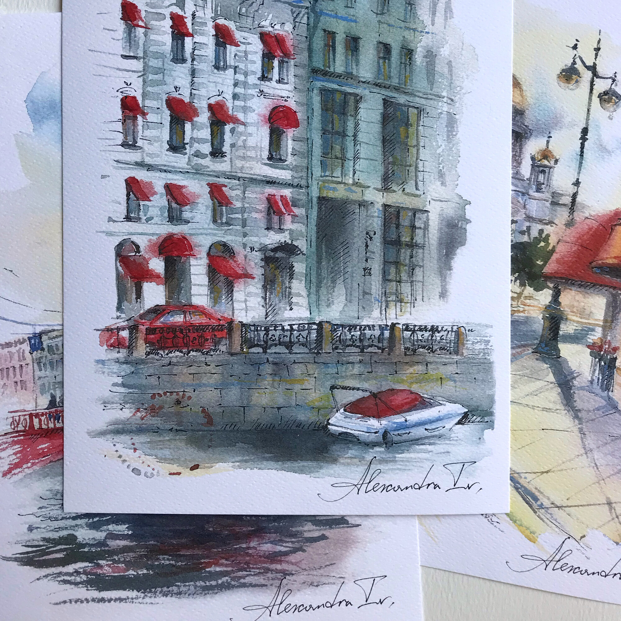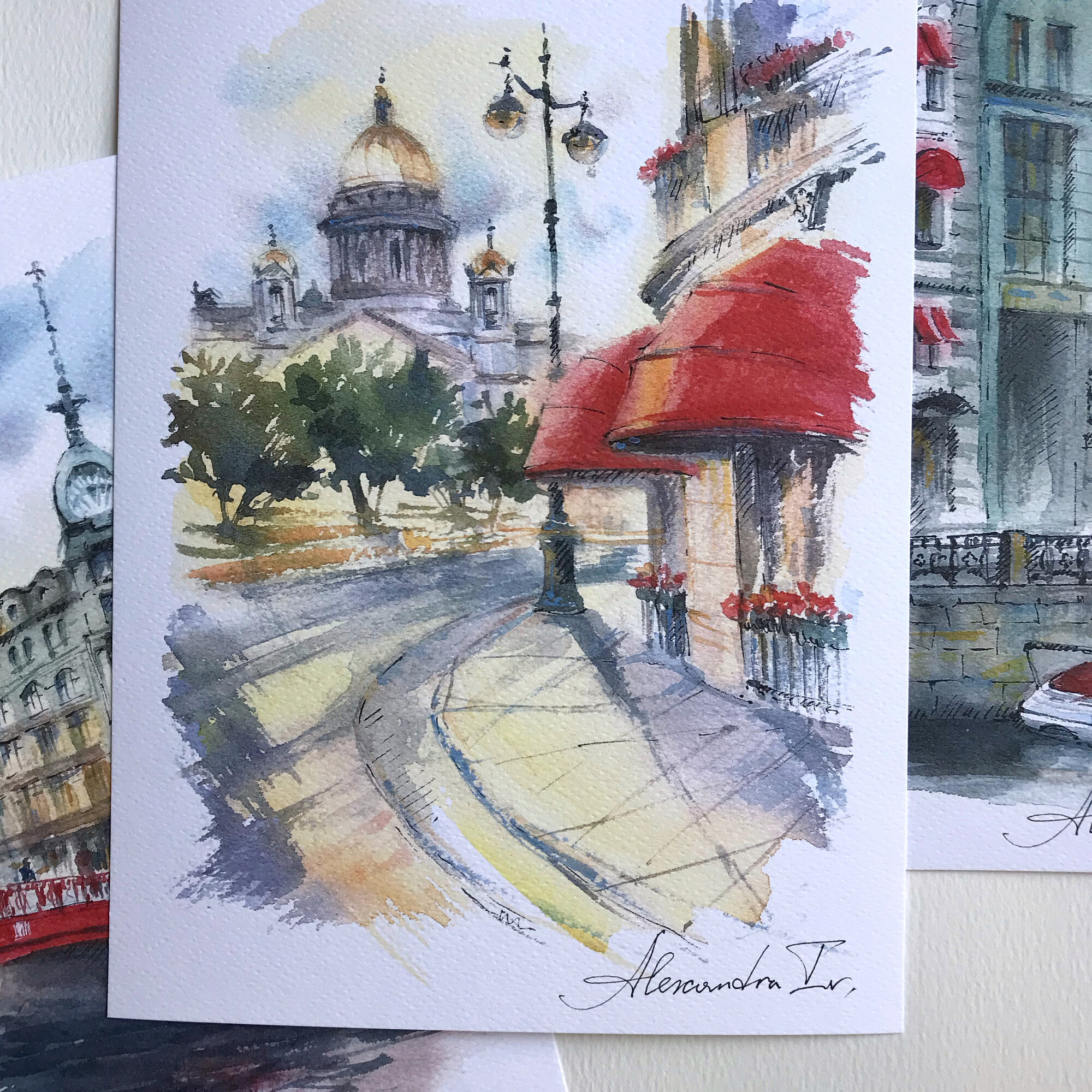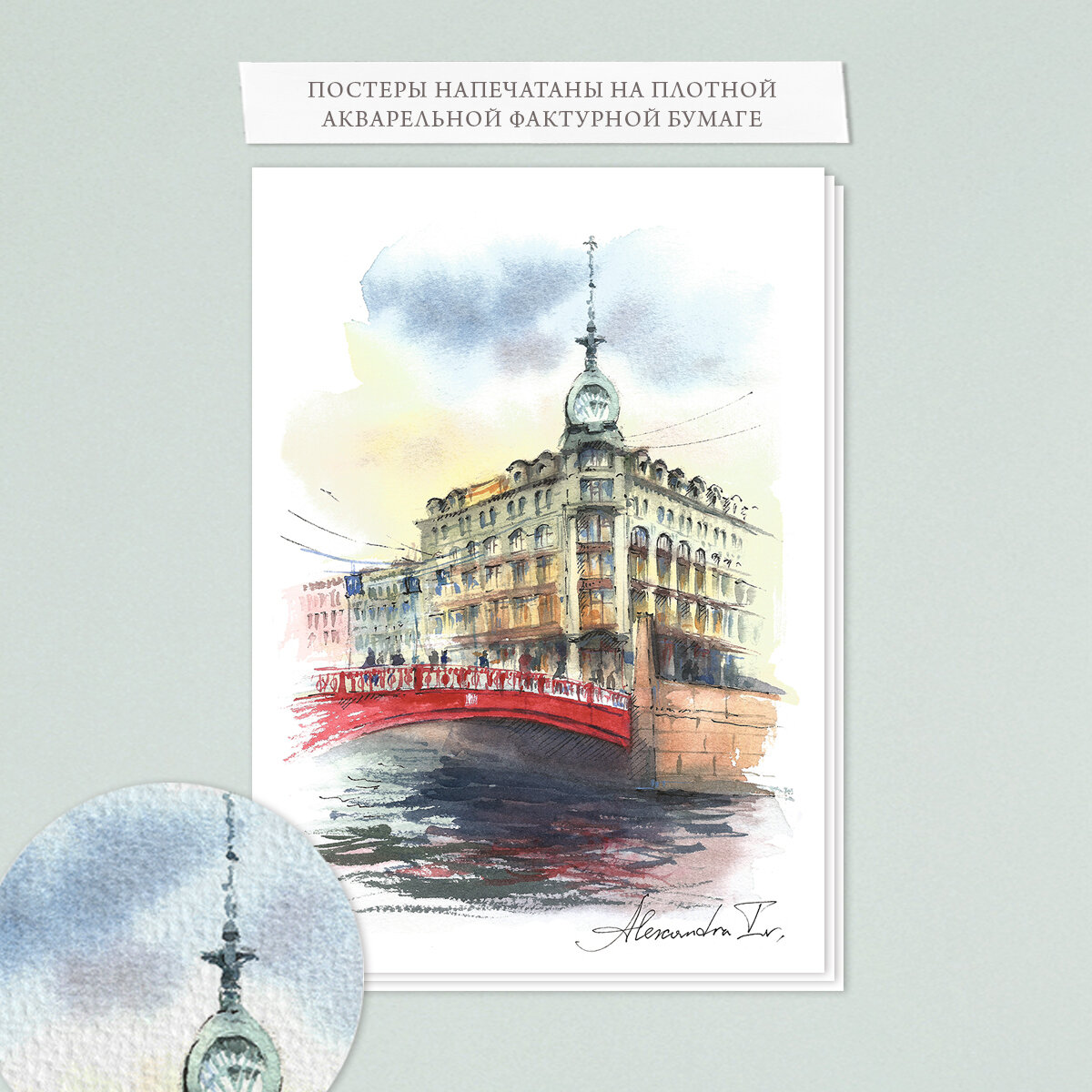Бумажные Постеры для интерьера без рам от Alexandra Iv. ,"Санкт-Петербург. Весна", набор из 3 штук, формат А4