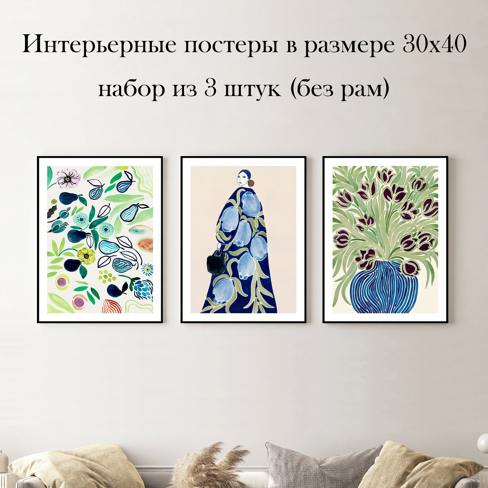 Набор интерьерных постеров "За цветами" 30х40 см 3 шт без рам