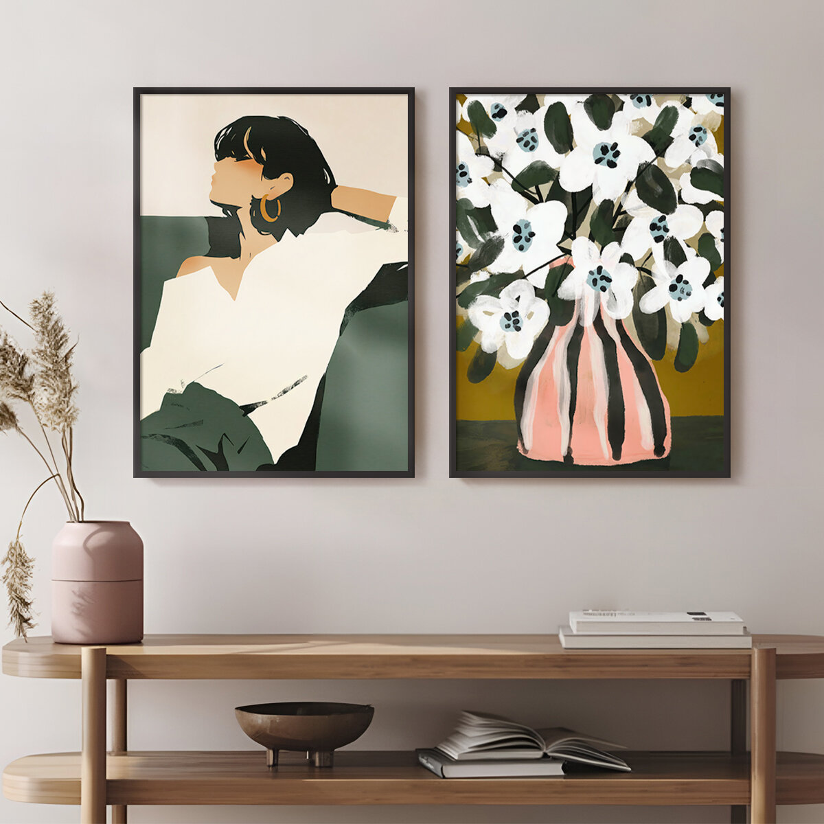 Постеры 2 шт 30х40 на стену "Девушка и букет" набор картин для интерьера