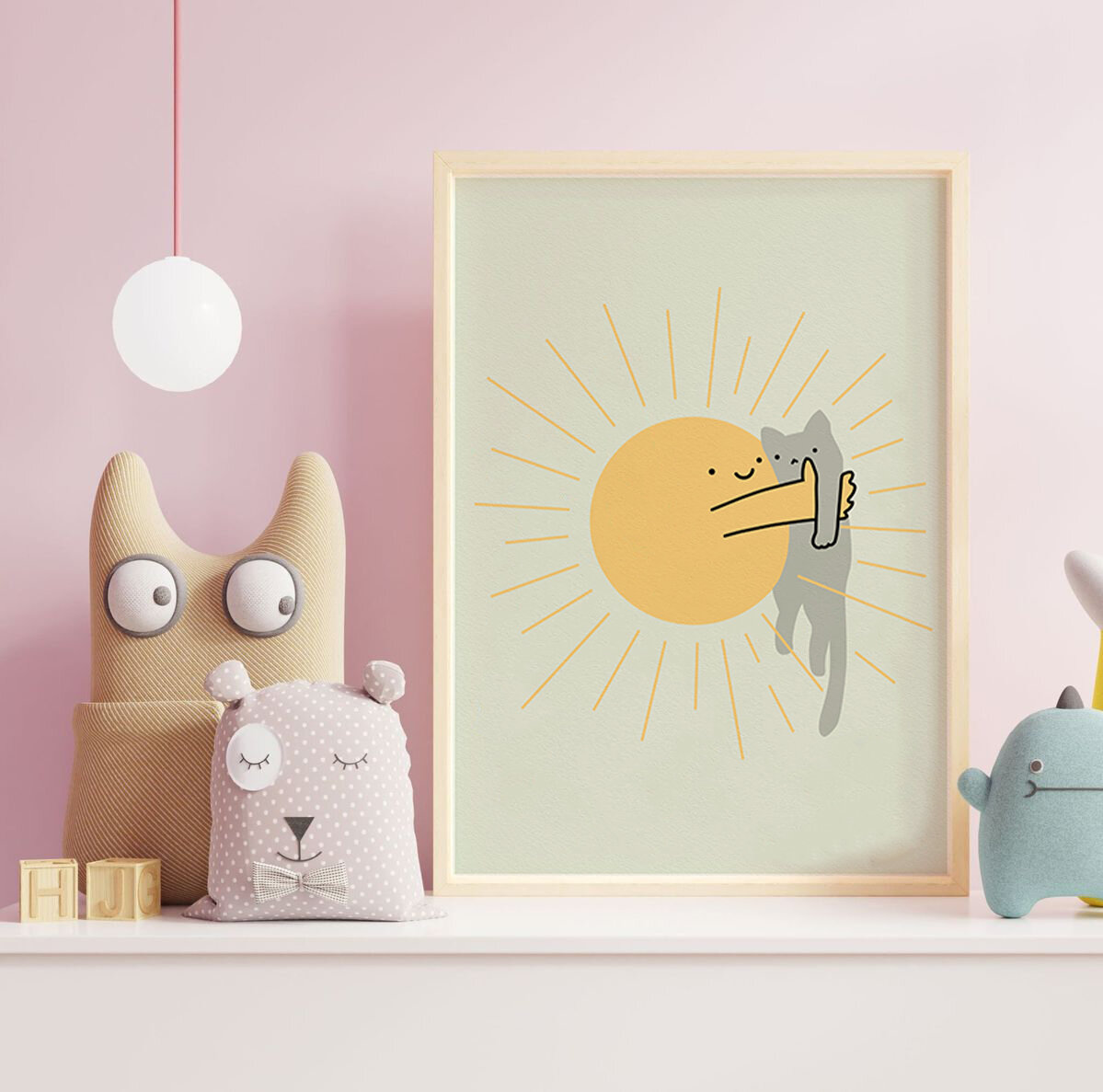 Купить Постер для интерьера MISHKA POSTER "Солнце и котик", А4 / Декор детской комнаты