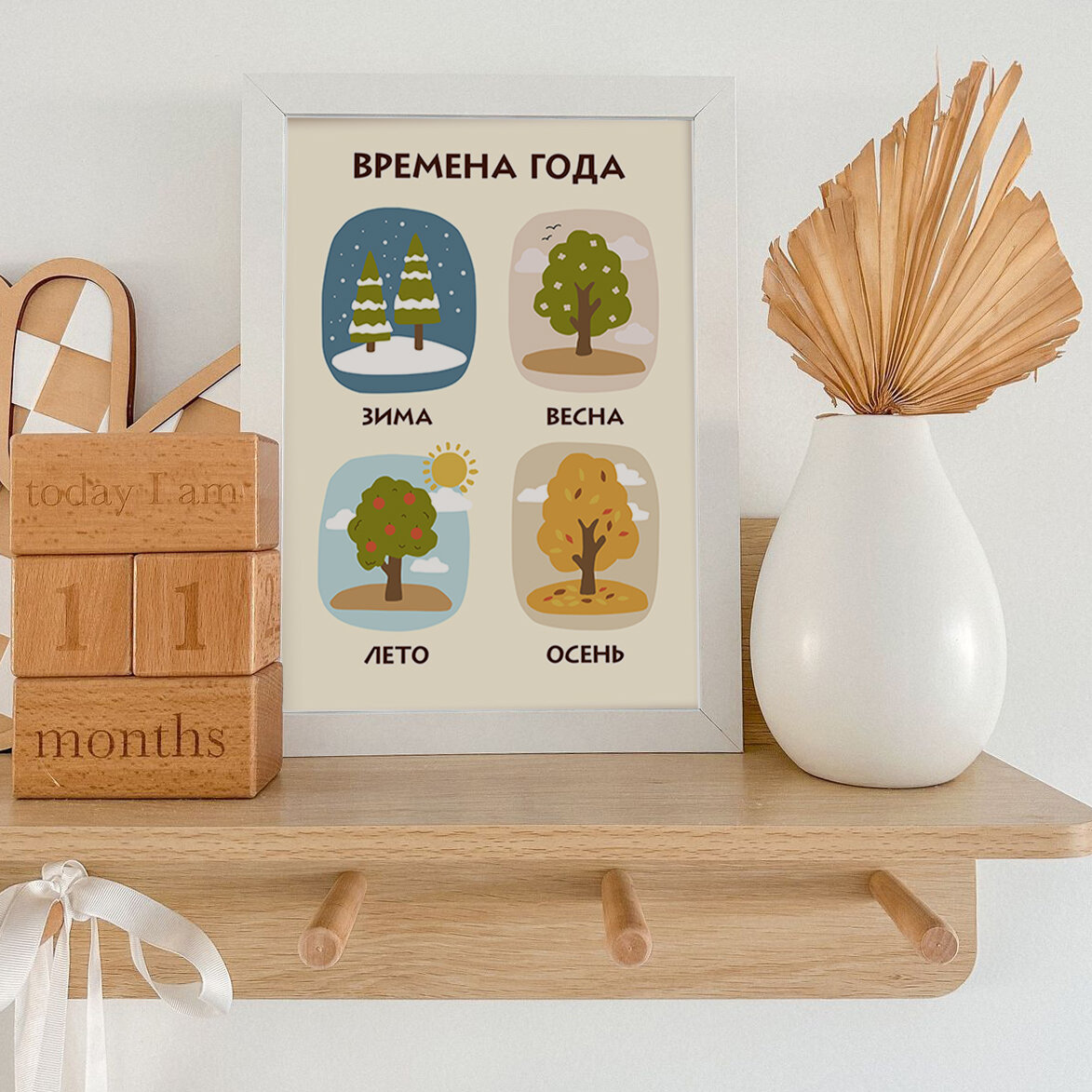 Постер детский обучающий MISHKA POSTER "Времена года", А3 / Плакат в детскую