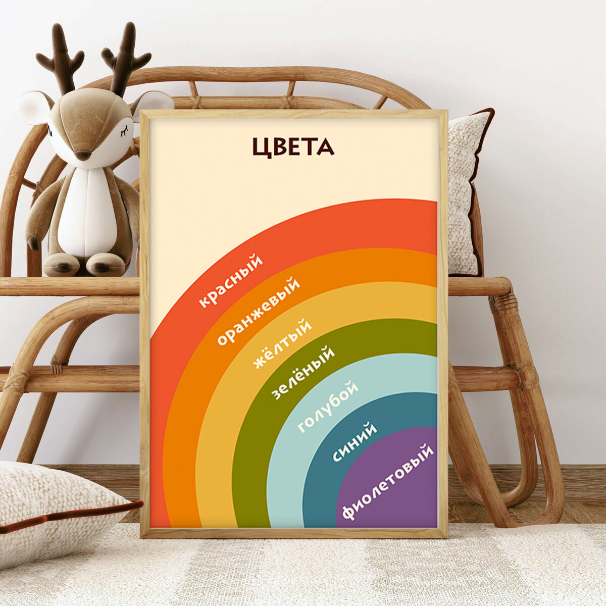Постер детский обучающий MISHKA POSTER "Цвета", А4 / Декор детской комнаты