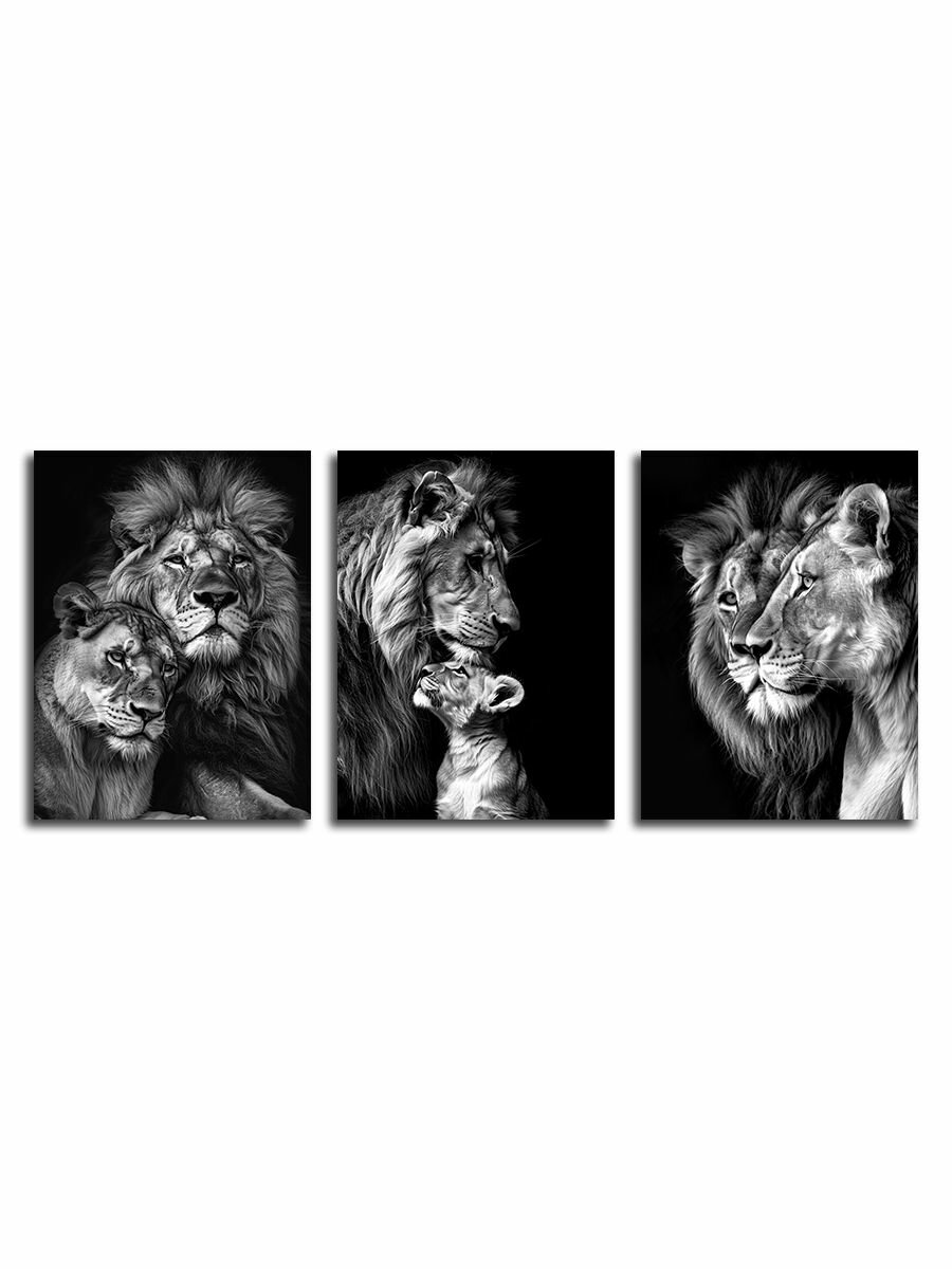 Комплект картин на холсте LOFTime 3 шт 40Х60 Лев Львица Львенок гол кор