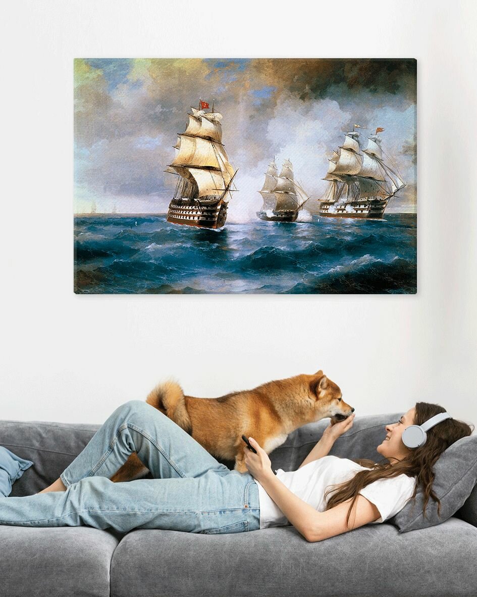 Купить Картина на стену репродукция Иван Айвазовский Бриг Меркурий атакованный двумя турецкими кораблями 30х40 см