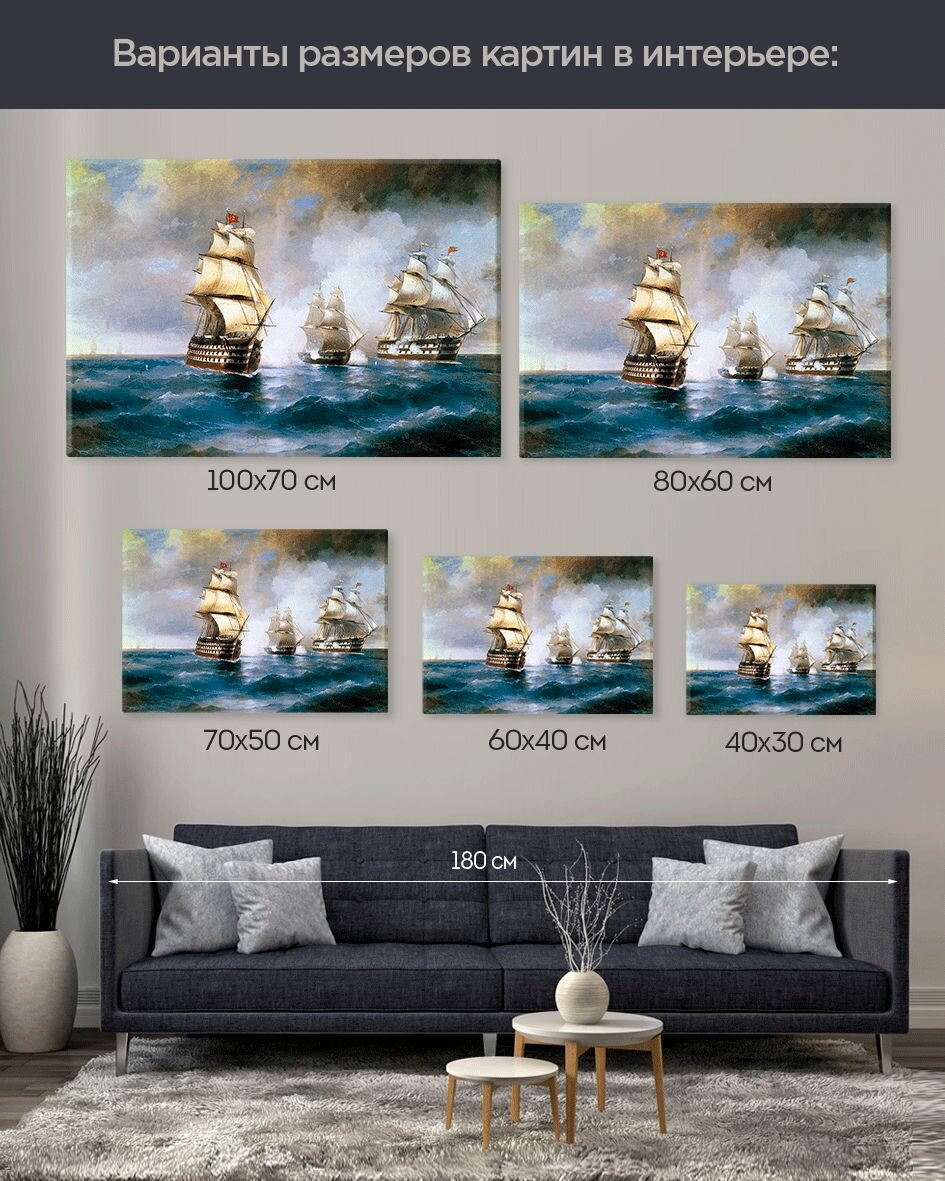 Картина на стену репродукция Иван Айвазовский Бриг Меркурий атакованный двумя турецкими кораблями 30х40 см интересное: