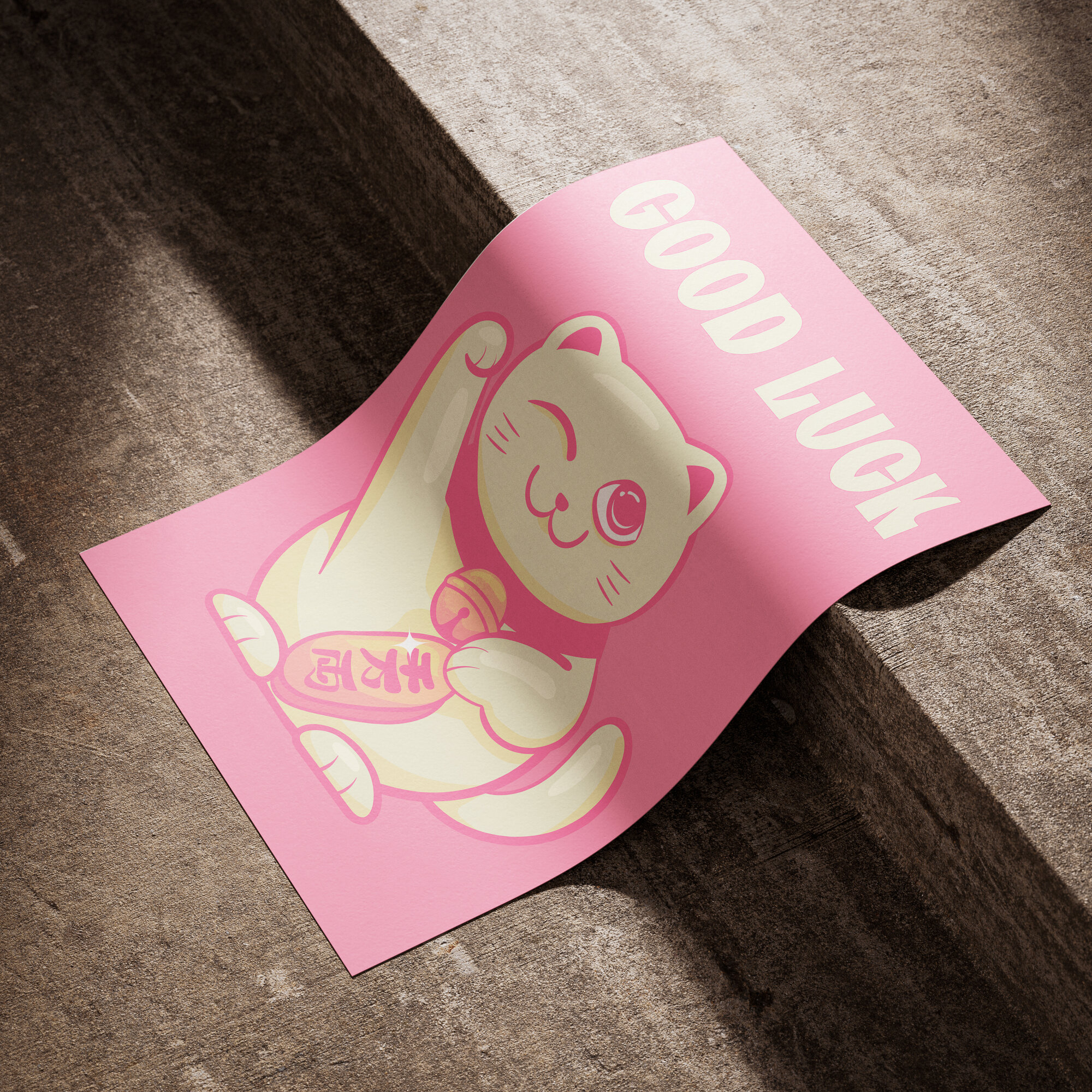 Купить MISHKA POSTER Постер для интерьера "Good luck/ Удачи" с манэки-нэко, А4 / Подарок на день рождения