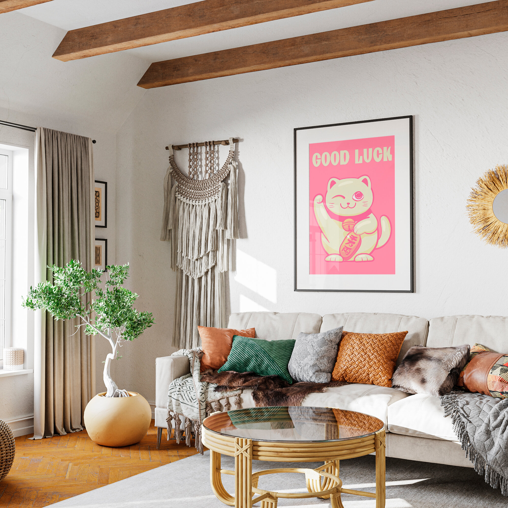 MISHKA POSTER Постер для интерьера "Good luck/ Удачи" с манэки-нэко, А4 / Подарок на день рождения