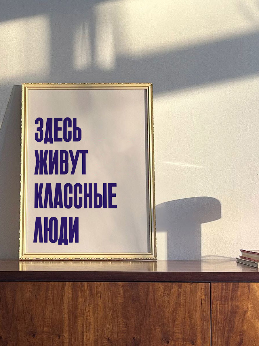 СохранитьПостер с надписью MISHKA POSTER "Здесь живут классные люди", А4 / Подарок на новоселье интересное: