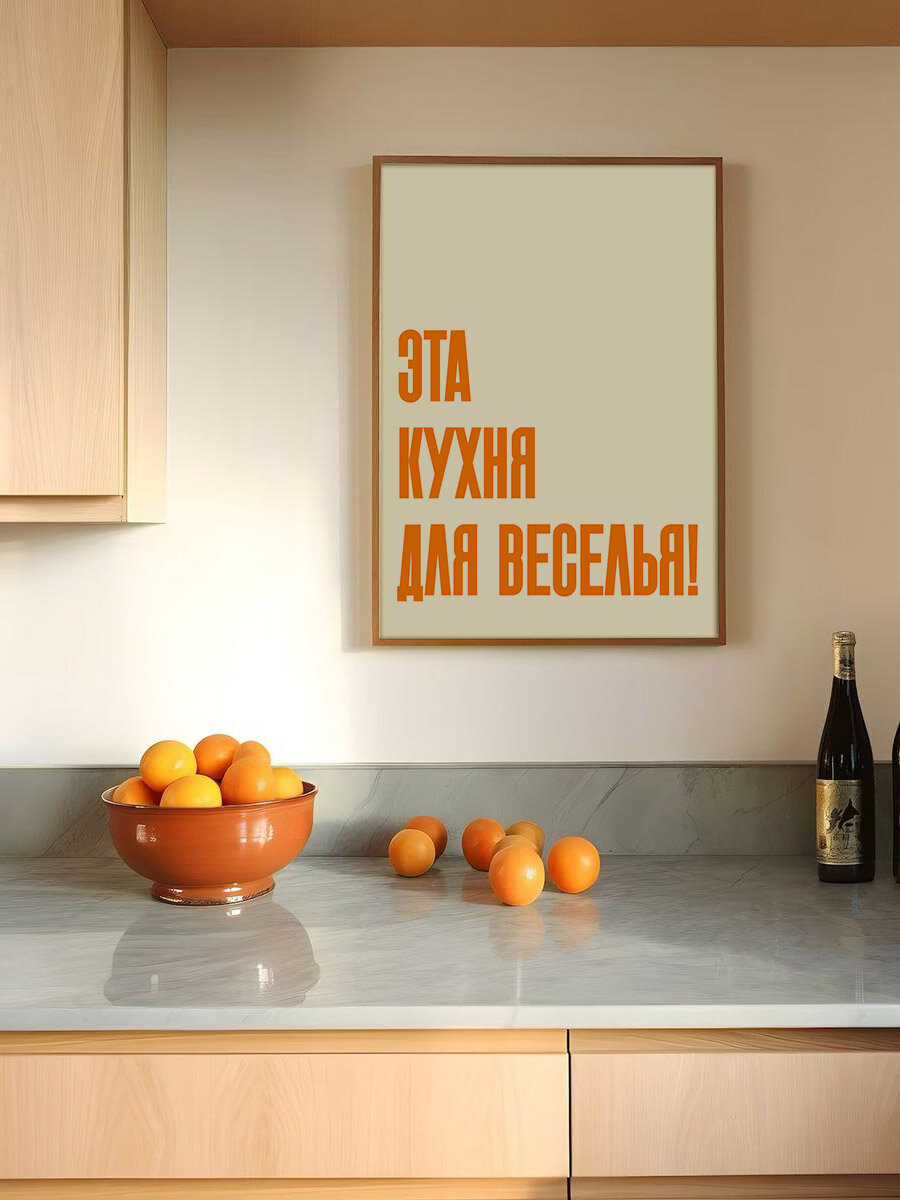 Постер для кухни MISHKA POSTER "Эта кухня для веселья", А4 / Подарок на новоселье