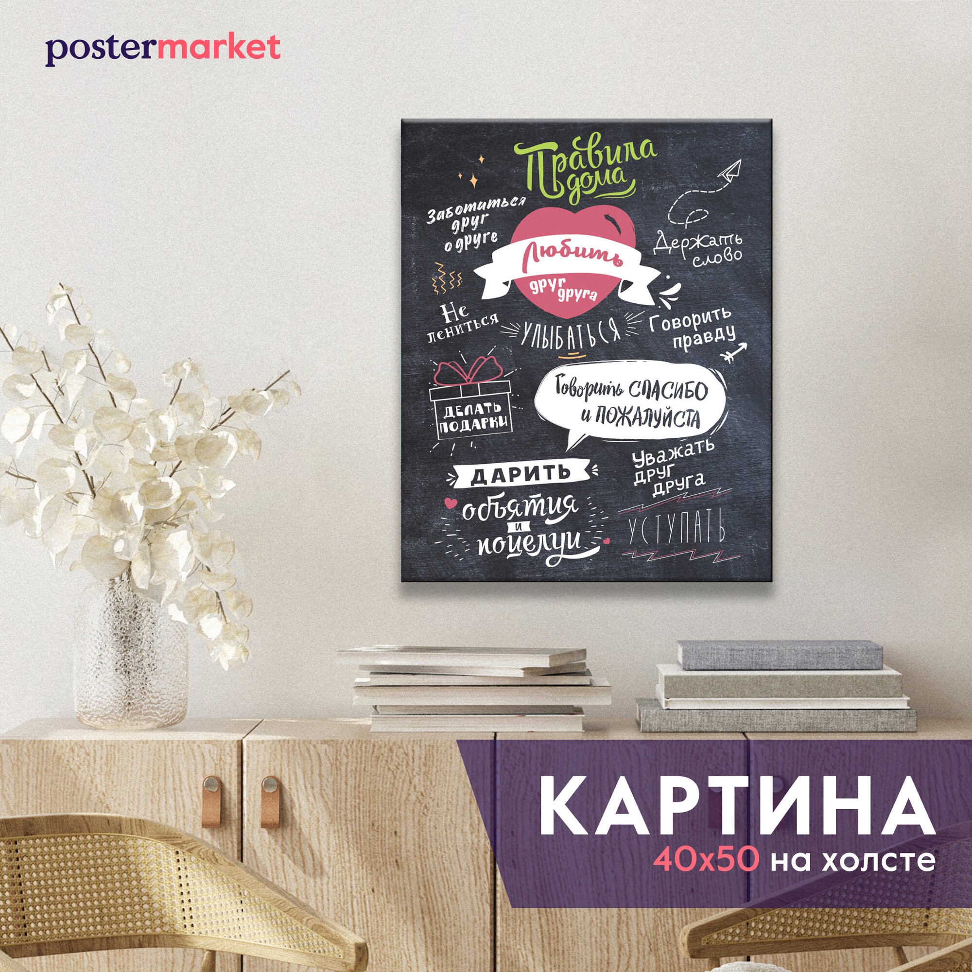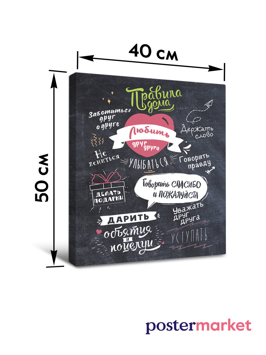 Картина Postermarket "Правила дома" холст, цифровая печать, 40х50 см, интересное: