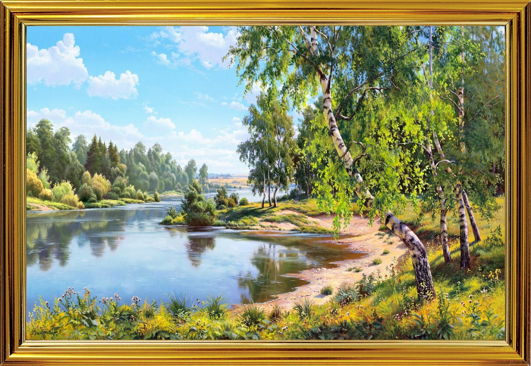 Картина "Берёзы у реки", 30х20 см, художник - Прищепа Игорь, Оформлена в багет, Арт. ПИ9-30х20 интересное: